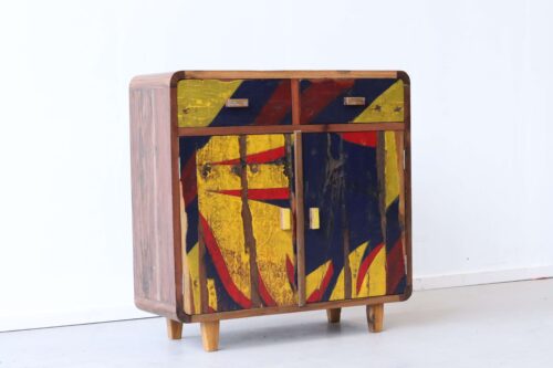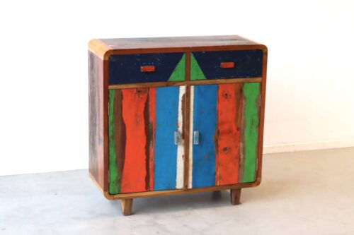 Ben je op zoek naar een opbergkastje van boothout dat nét even anders is? Dit kastje is handgemaakt van massief hout uit oude Indonesische vissersbootjes. Jarenlang trotseerden deze boten zon, zout en zee. Het resultaat is een meubel dat niet alleen praktisch is, maar ook een kleurrijk verhaal vertelt.