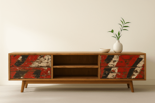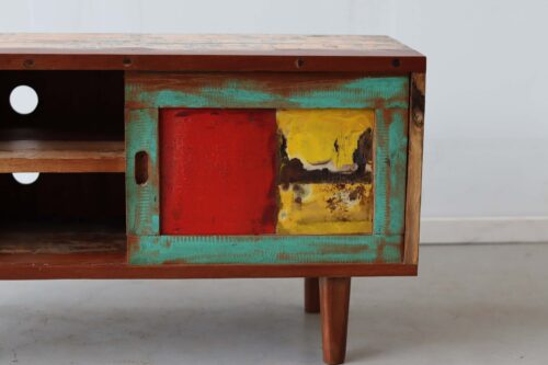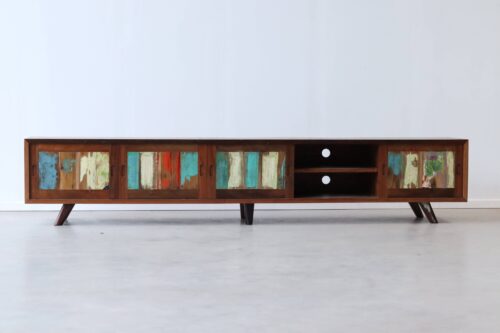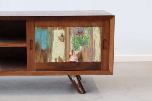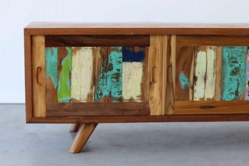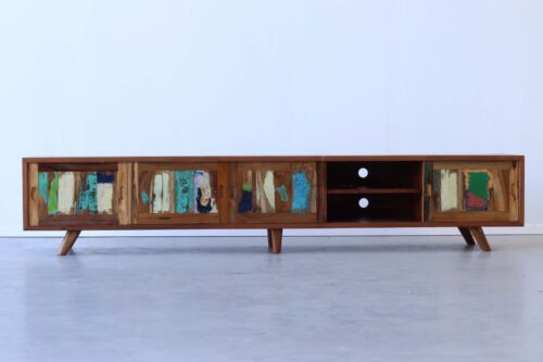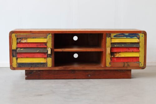 De TV meubels boothout van Daan Hout brengen kleur, karakter en een bijzonder verhaal in je interieur. Deze meubels zijn gemaakt van oud vissersboothout dat jarenlang de zeeën rond eilanden als Bali, Java, Lombok en Sumba trotseerde. Het hout is zorgvuldig verzameld en met de hand bewerkt tot unieke meubels die de sporen van hun vorige leven trots tonen.
