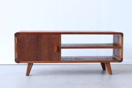 Combineer je TV meubel met een bijpassende boothout kast voor een harmonieus geheel in je interieur.