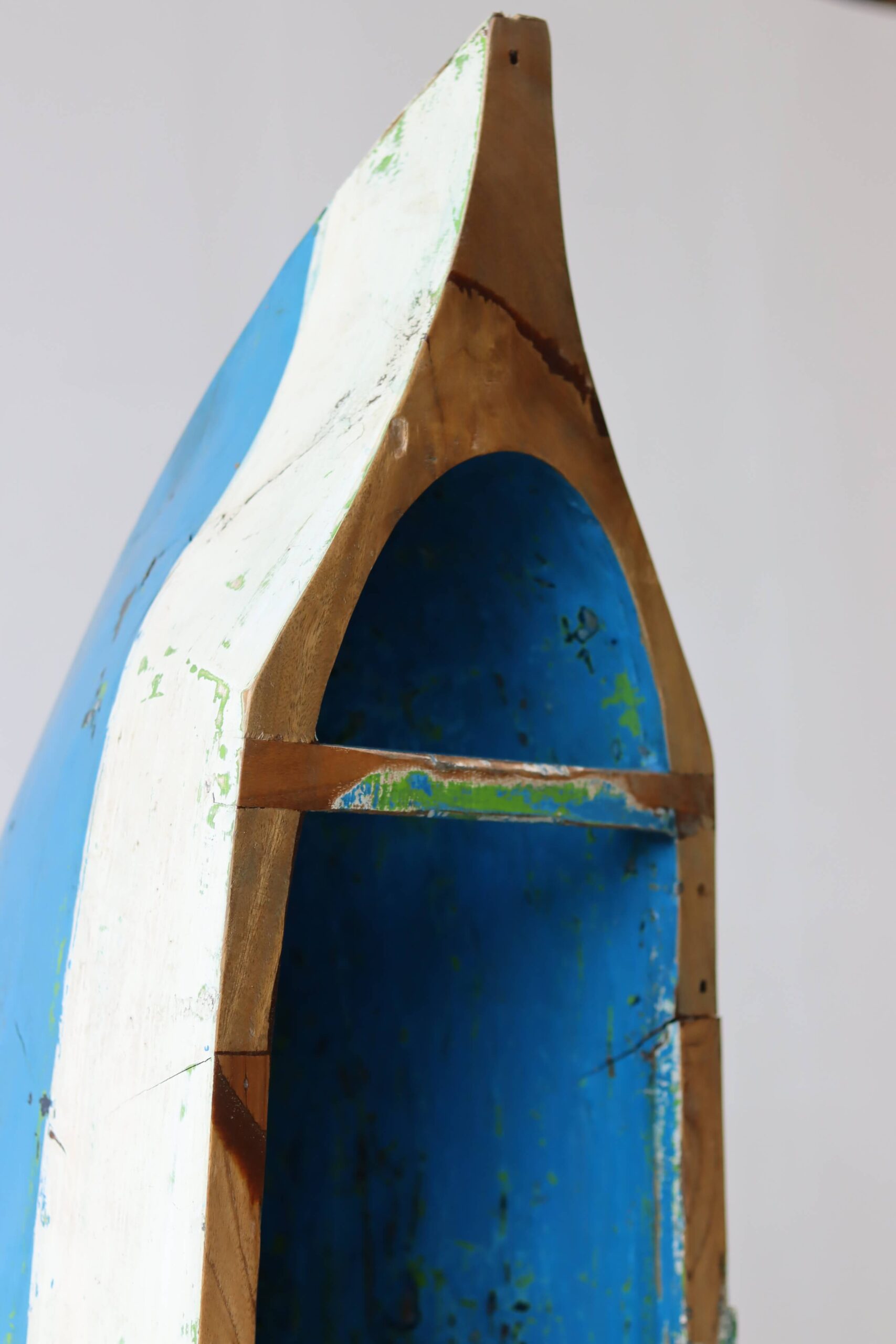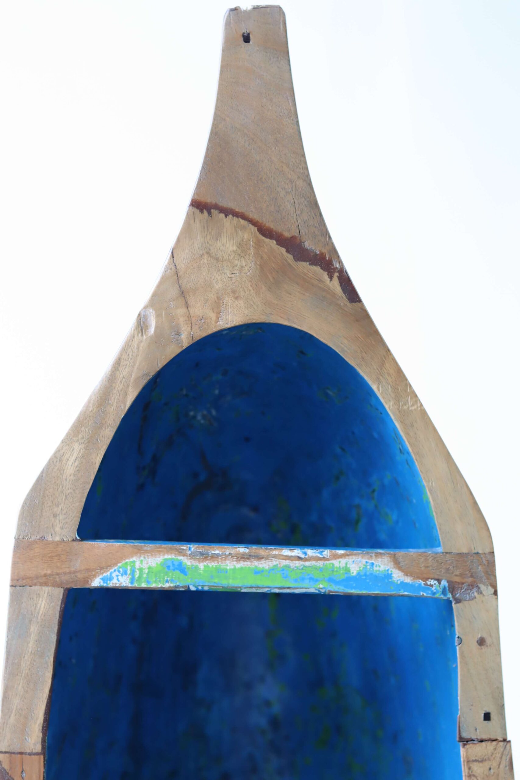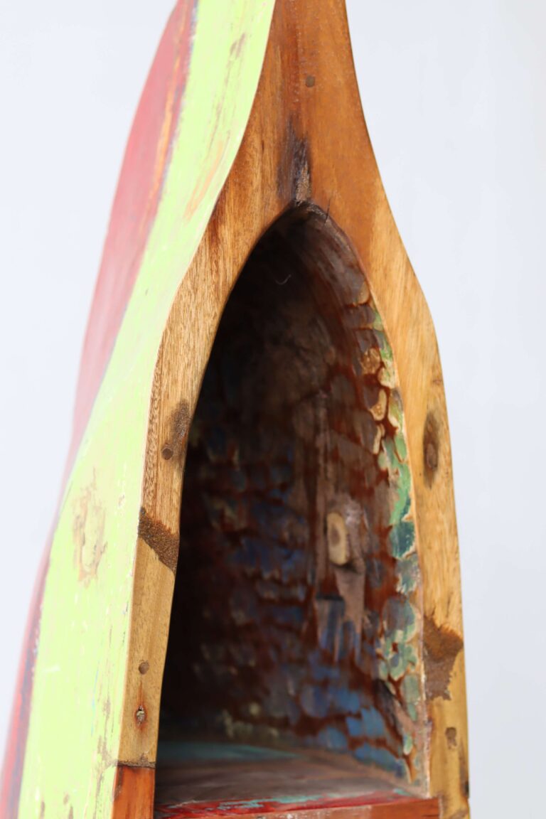 De vissersboten in Indonesië zijn vaak jarenlang blootgesteld aan de zee en hebben door de vele lagen verf unieke kleurenpatronen gekregen. Namen van boten of families zijn soms nog zichtbaar, wat elk meubel een stukje geschiedenis meegeeft. Door het hergebruik van dit hout dragen we bij aan een duurzamere omgang met grondstoffen, zonder concessies te doen aan stijl of kwaliteit.