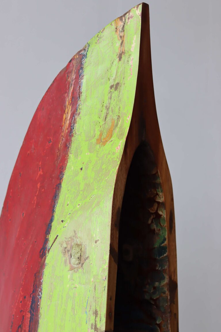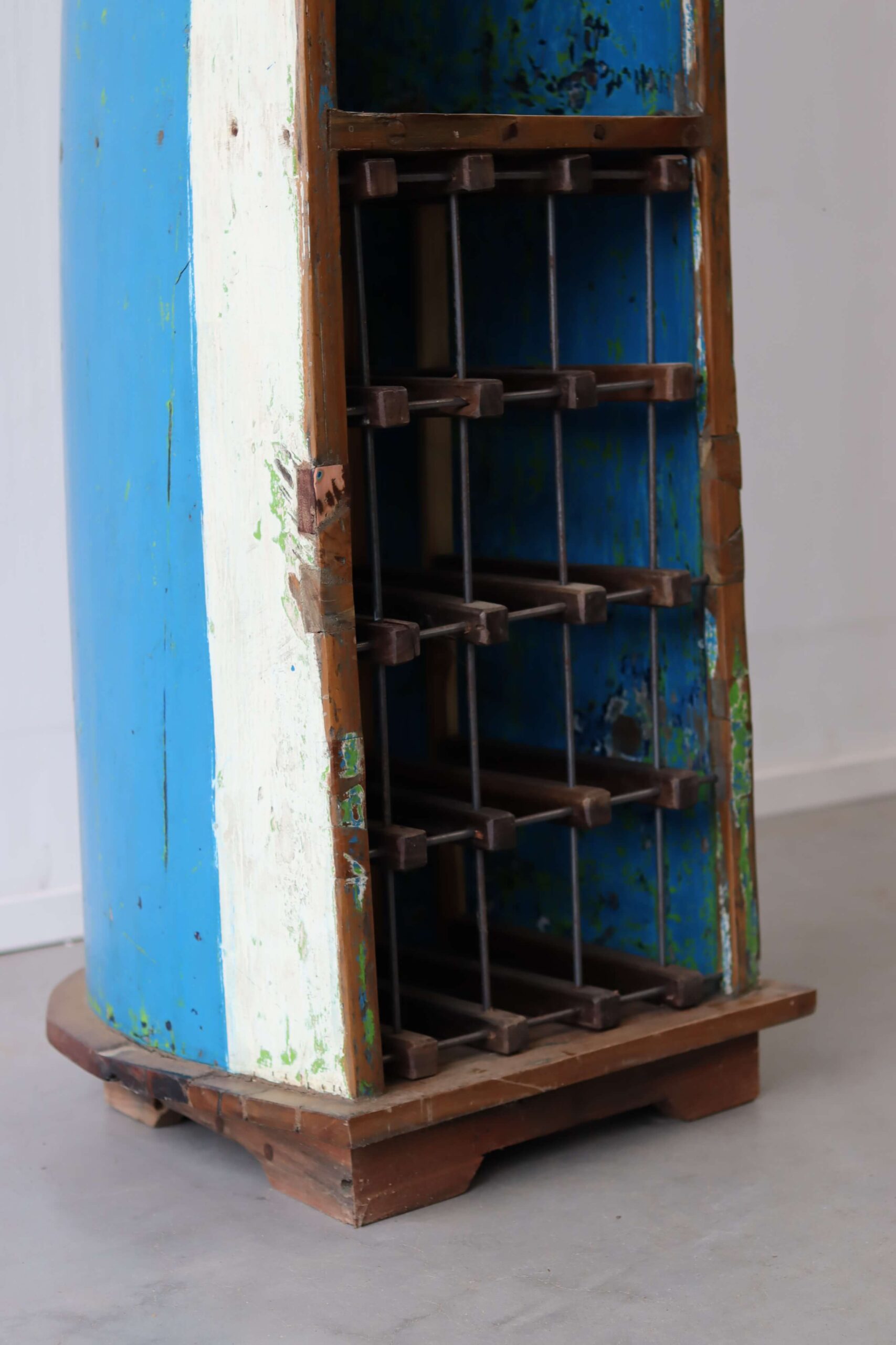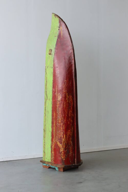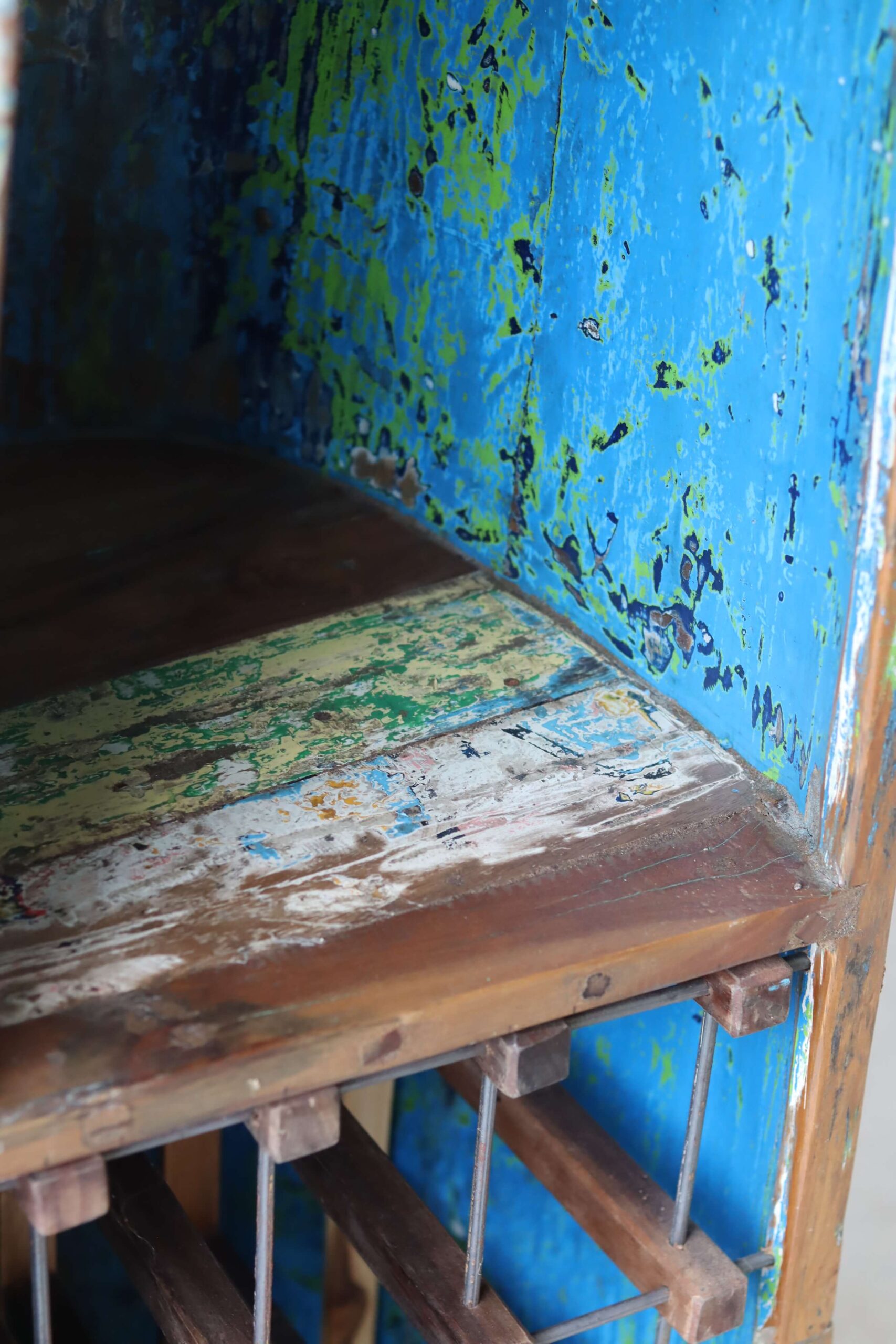 De vissersboten in Indonesië zijn vaak jarenlang blootgesteld aan de zee en hebben door de vele lagen verf unieke kleurenpatronen gekregen. Namen van boten of families zijn soms nog zichtbaar, wat elk meubel een stukje geschiedenis meegeeft. Door het hergebruik van dit hout dragen we bij aan een duurzamere omgang met grondstoffen, zonder concessies te doen aan stijl of kwaliteit.