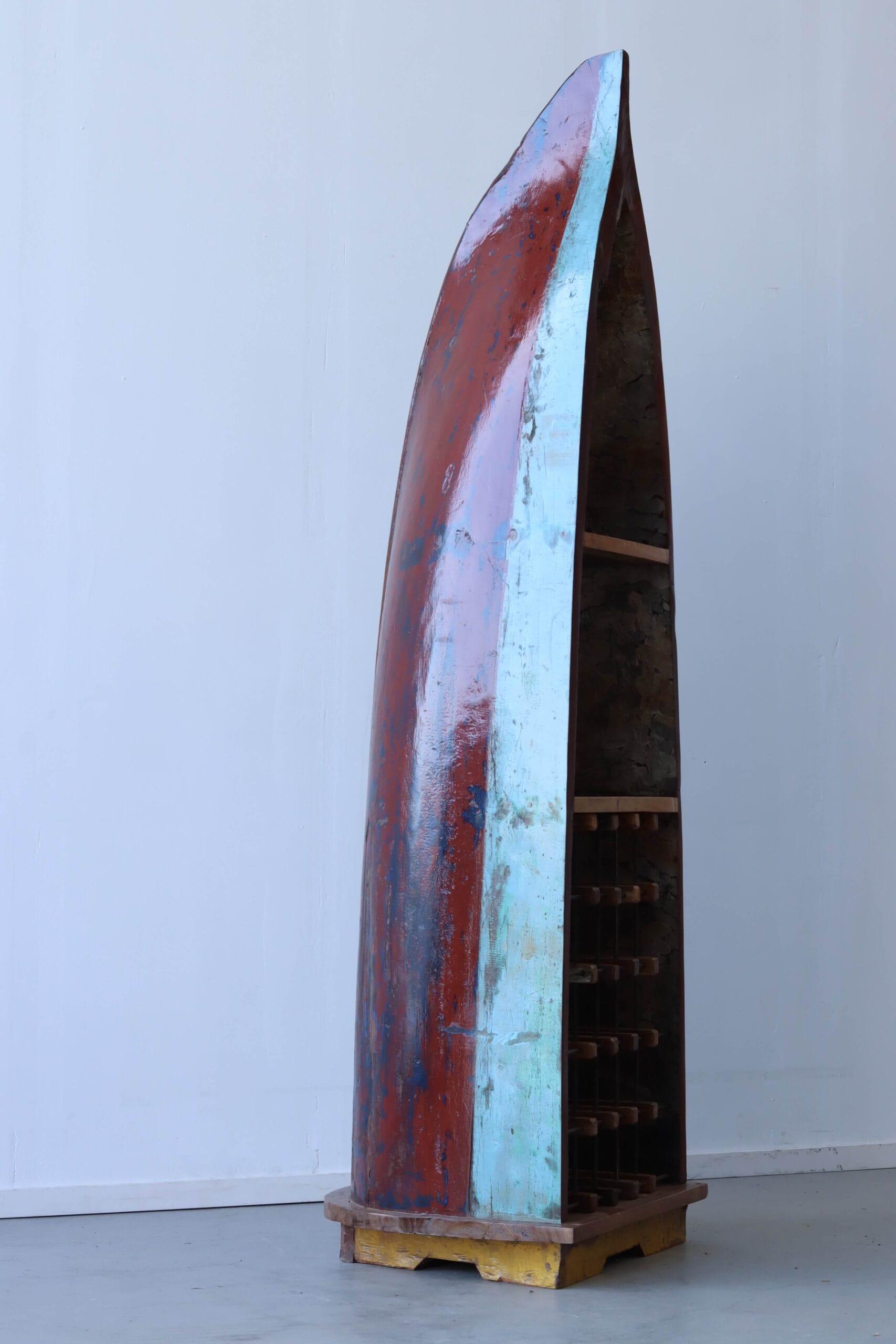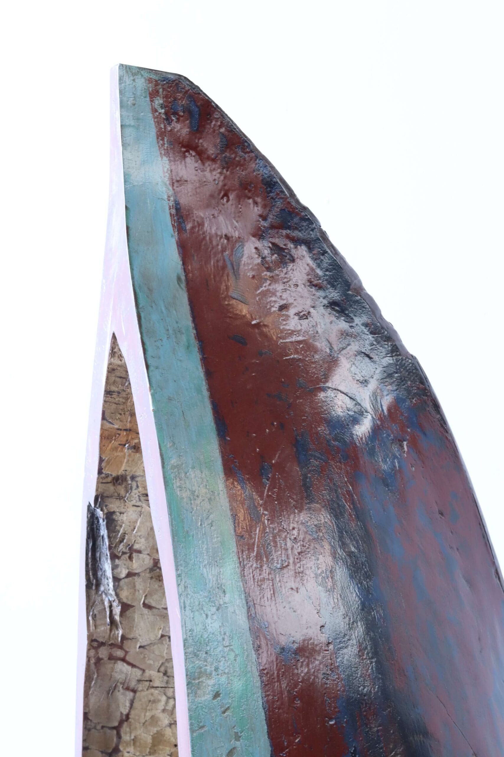 De vissersboten in Indonesië zijn vaak jarenlang blootgesteld aan de zee en hebben door de vele lagen verf unieke kleurenpatronen gekregen. Namen van boten of families zijn soms nog zichtbaar, wat elk meubel een stukje geschiedenis meegeeft. Door het hergebruik van dit hout dragen we bij aan een duurzamere omgang met grondstoffen, zonder concessies te doen aan stijl of kwaliteit.