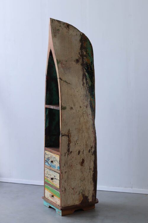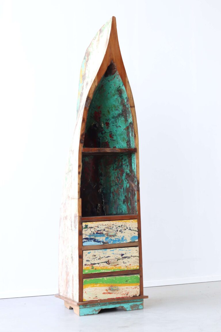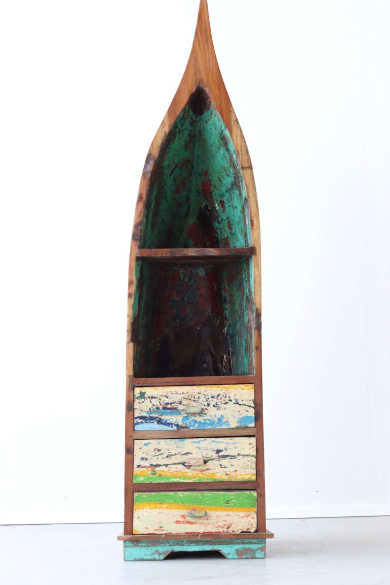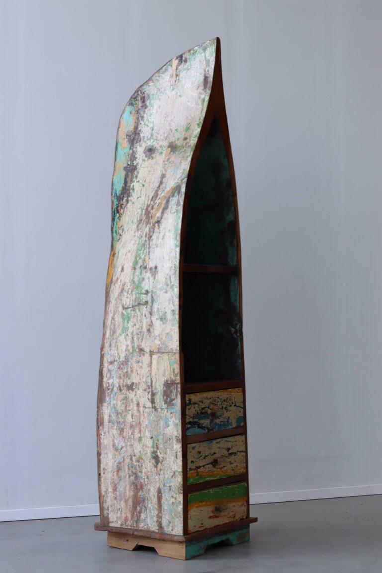 Een authentiek meubel gemaakt van hout van oude vissersbootjes van Bali, Java, Sumba, Lombok, Sulawesi of één van de vele andere eilanden van Indonesië. Voor het maken van onze meubels gebruiken wij uitsluitend hout van vissersboten die niet meer zeewaardig zijn. Dit hout, van uitzonderlijke kwaliteit, is door zijn kleurrijke en verweerde uitstraling een ware bron van inspiratie.