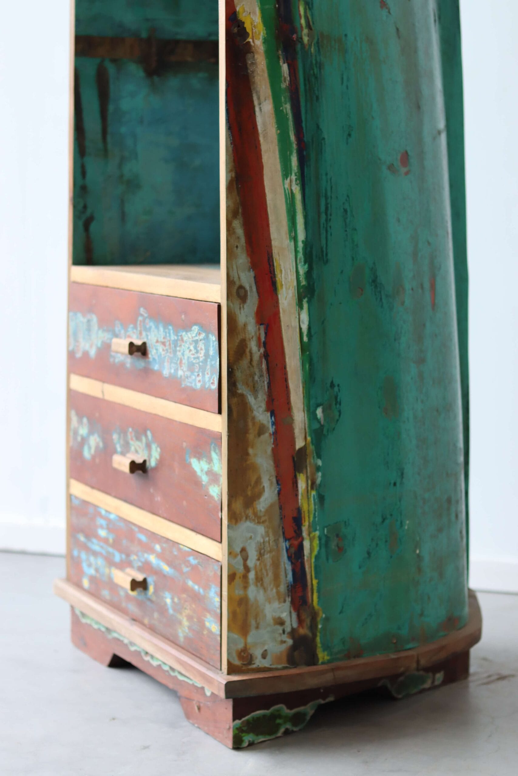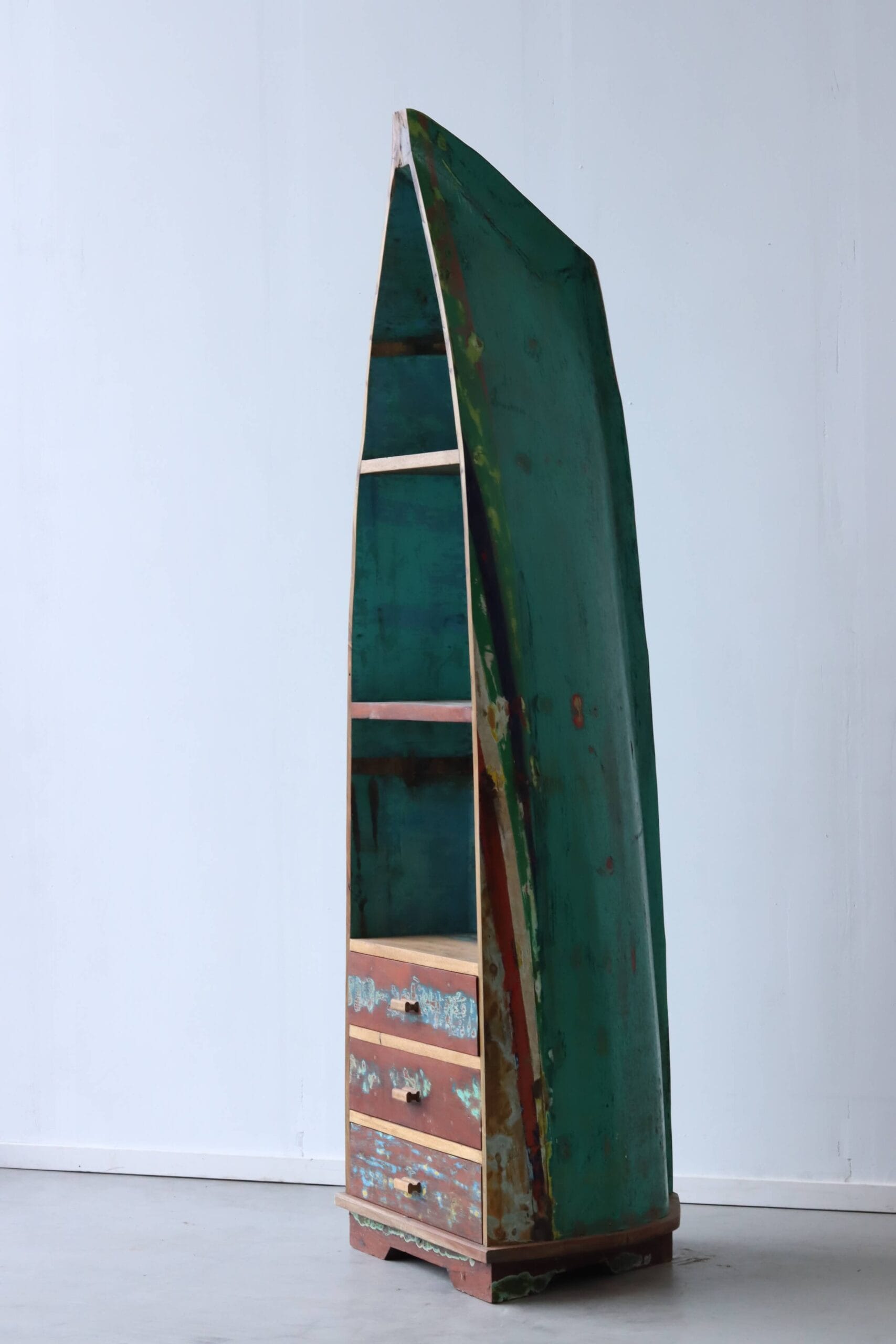 De bootkast Kapal is meer dan een meubel. Het is een herinnering aan de zee, aan samenwerking met lokale makers, en aan een plek waar oude boten en nieuwe ideeën samenkomen.