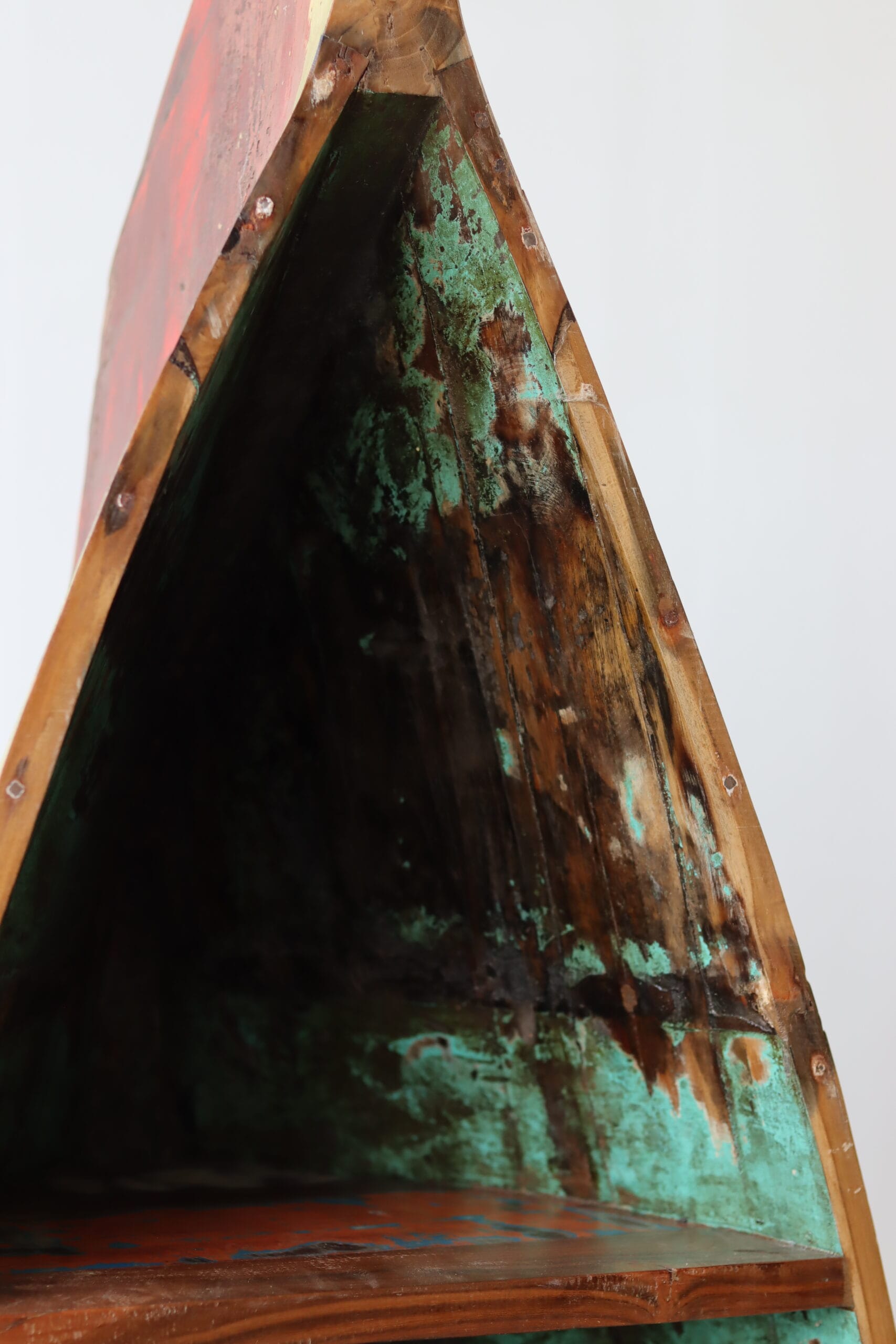 De vissersboten in Indonesië zijn vaak jarenlang blootgesteld aan de zee en hebben door de vele lagen verf unieke kleurenpatronen gekregen. Namen van boten of families zijn soms nog zichtbaar, wat elk meubel een stukje geschiedenis meegeeft. Door het hergebruik van dit hout dragen we bij aan een duurzamere omgang met grondstoffen, zonder concessies te doen aan stijl of kwaliteit.