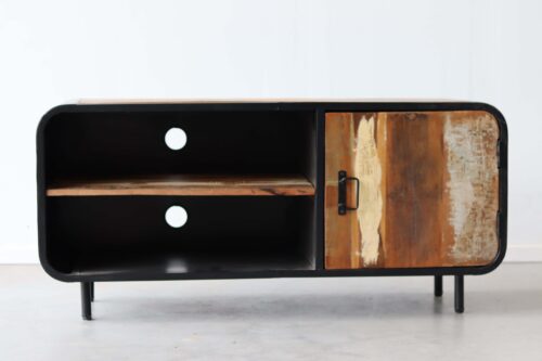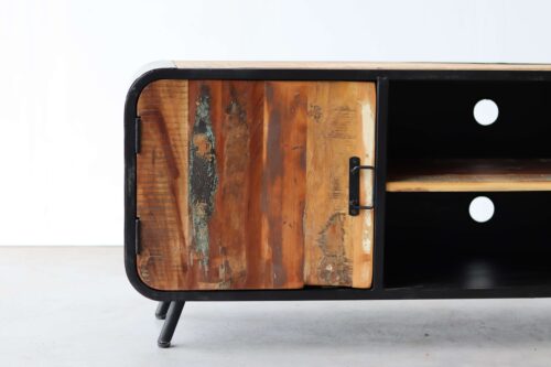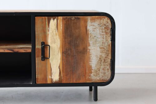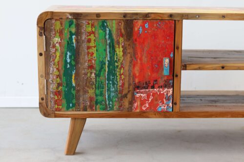 Tv meubel van sloophout met kleurrijke deuren – handgemaakt meubel van Daan Hout