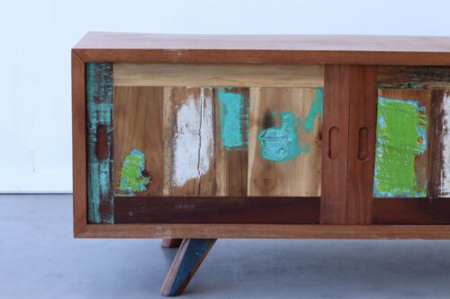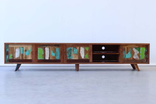 TV meubel Java van kleurrijk gerecycled boothout met schuifdeuren – 245 cm breed – Daan Hout