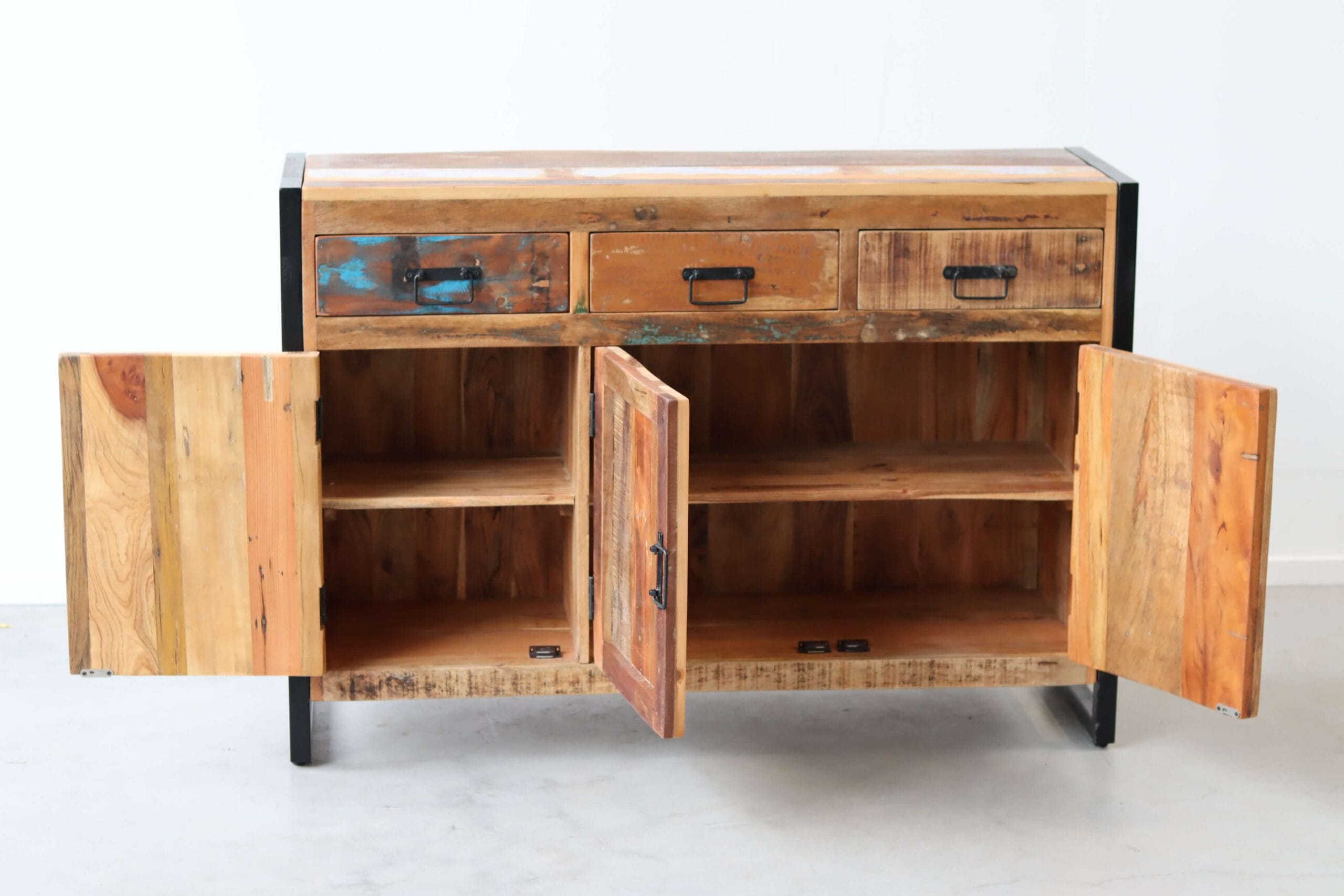 Uniek meubel van sloophout met een stalen frame. Het contrast tussen het oude geleefde hout en het eigentijdse model maakt het meubel extra bijzonder. Meubels van Daan Hout zijn altijd met zorg en aandacht gemaakt. Zo krijg je een meubel dat precies past bij de sfeer die jij wilt creëren.