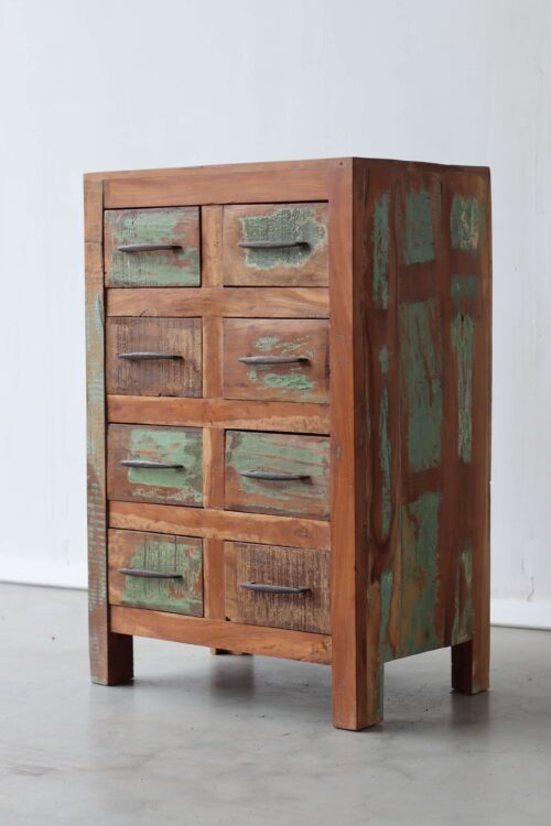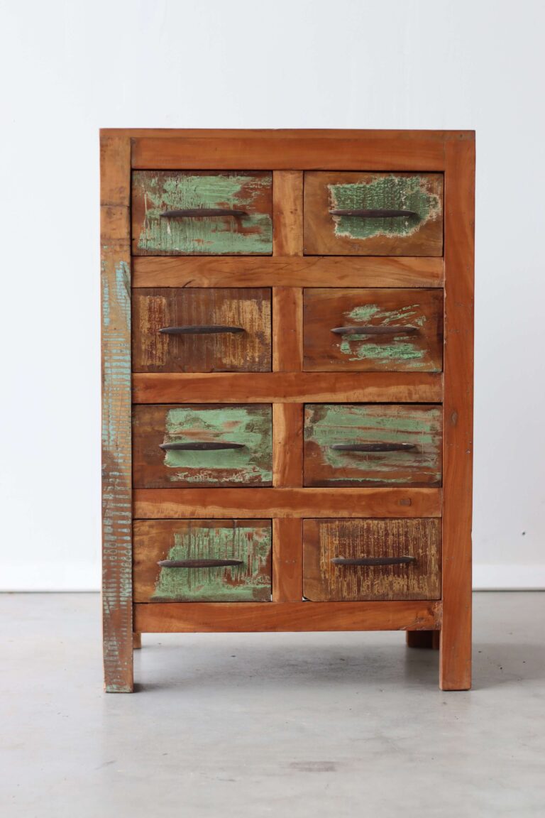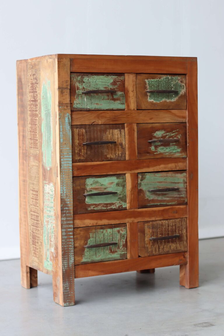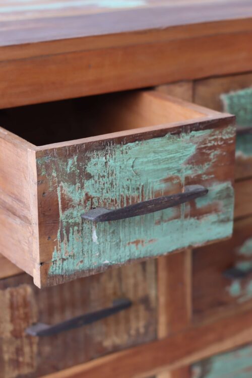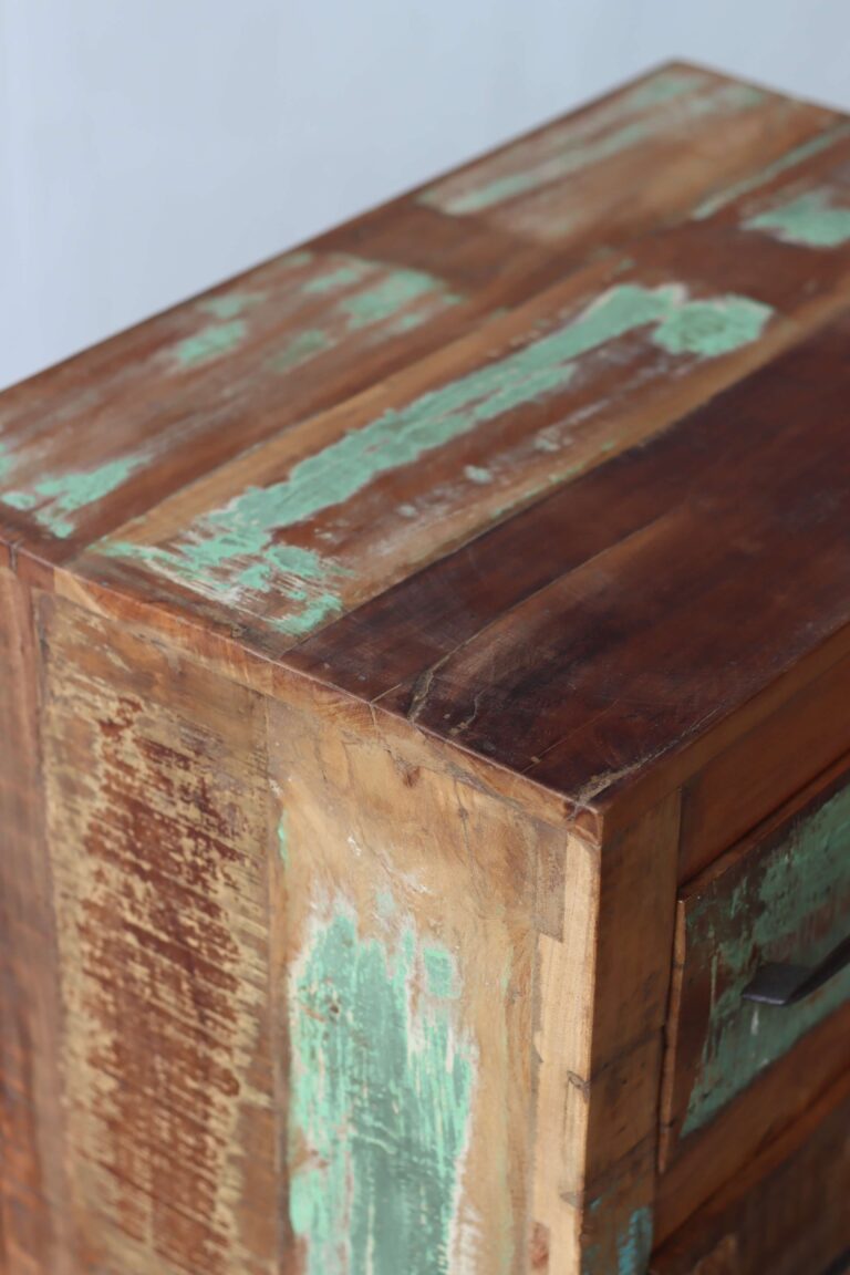 Onze sloophout collectie wordt in Jodhpur met de hand gemaakt door ervaren vakmensen. Zij gebruiken verschillende houtsoorten, zoals mango-, saal-, acacia- en teakhout, om meubels te creëren die zowel robuust als verfijnd zijn. Geen twee meubels zijn hetzelfde, dankzij de unieke mix van houtstructuren en natuurlijke tinten.