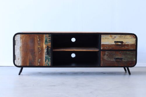 TV meubel Java van kleurrijk gerecycled boothout met schuifdeuren – 245 cm breed – Daan Hout