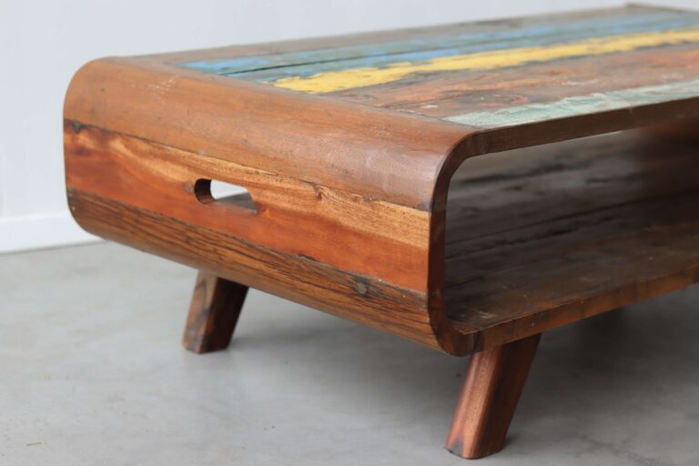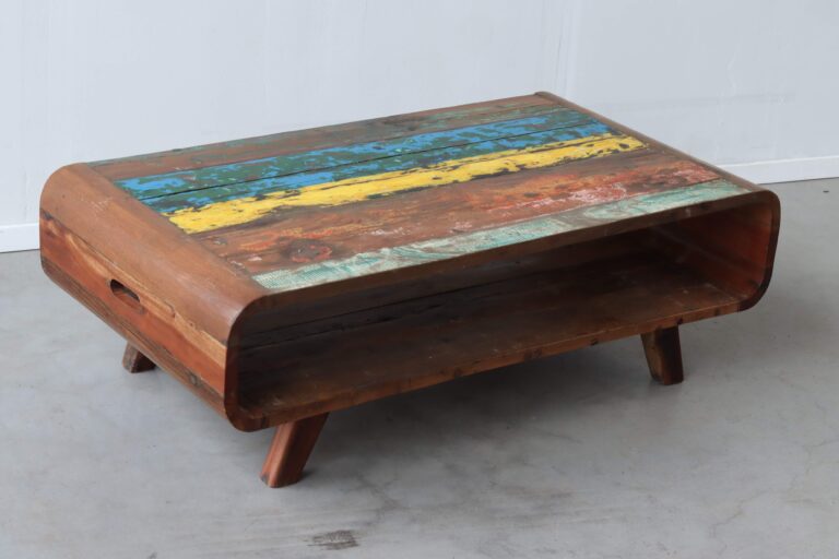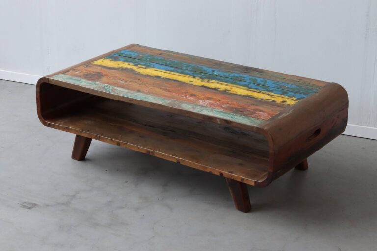 Op zoek naar een retro salontafel die jouw interieur écht laat spreken? De salontafel Bali is een unieke mix van kleur, ronding en geschiedenis. Gemaakt van gerecycled hout van oude vissersboten uit Indonesië is dit geen standaard meubelstuk, maar een levendige herinnering aan het eilandleven. Verwerkt tot een designstatement voor in jouw woonkamer.