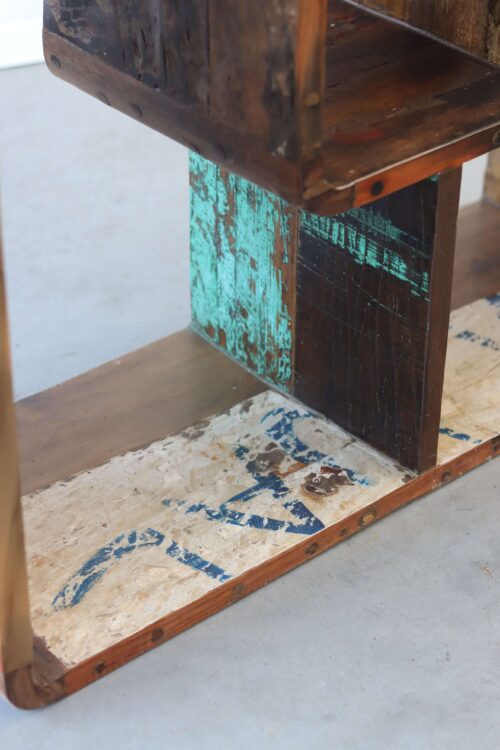 Een authentiek meubel gemaakt van hout van oude vissersbootjes van Bali, Java, Sumba, Lombok, Sulawesi of één van de vele andere eilanden van Indonesië. Voor het maken van onze meubels gebruiken wij uitsluitend hout van vissersboten die niet meer zeewaardig zijn. Dit hout, van uitzonderlijke kwaliteit, is door zijn kleurrijke en verweerde uitstraling een ware bron van inspiratie.