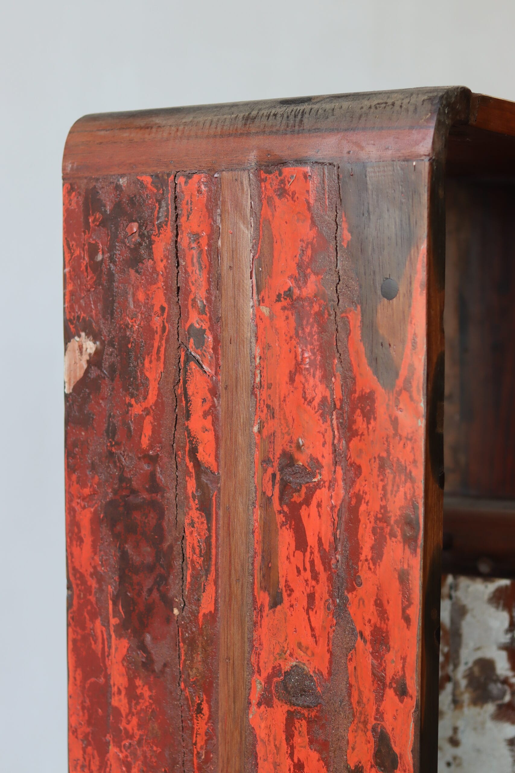 De vissersboten in Indonesië zijn vaak jarenlang blootgesteld aan de zee en hebben door de vele lagen verf unieke kleurenpatronen gekregen. Namen van boten of families zijn soms nog zichtbaar, wat elk meubel een stukje geschiedenis meegeeft. Door het hergebruik van dit hout dragen we bij aan een duurzamere omgang met grondstoffen, zonder concessies te doen aan stijl of kwaliteit.