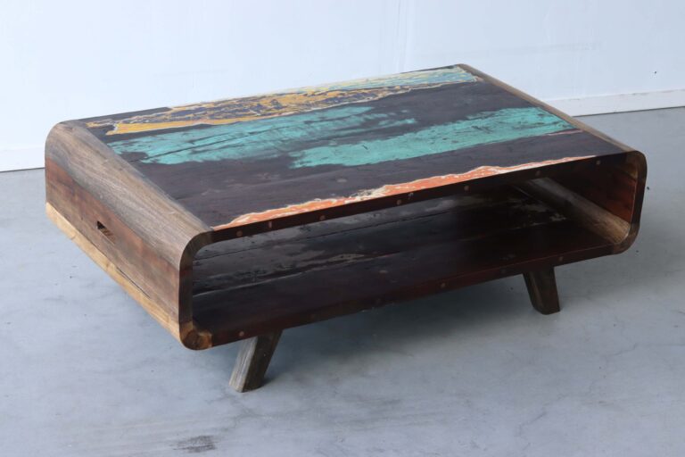 Een authentiek meubel gemaakt van hout van oude vissersbootjes van Bali, Java, Sumba, Lombok, Sulawesi of één van de vele andere eilanden van Indonesië. Voor het maken van onze meubels gebruiken wij uitsluitend hout van vissersboten die niet meer zeewaardig zijn. Dit hout, van uitzonderlijke kwaliteit, is door zijn kleurrijke en verweerde uitstraling een ware bron van inspiratie.
