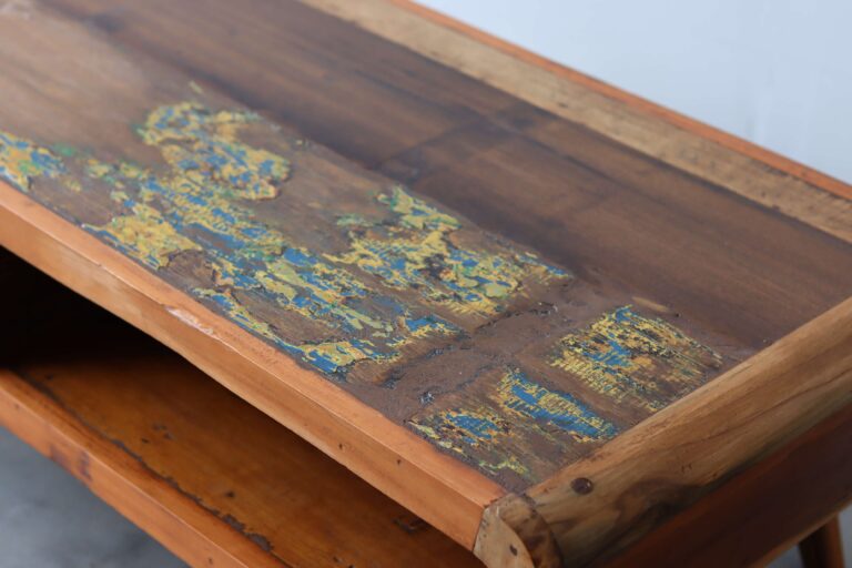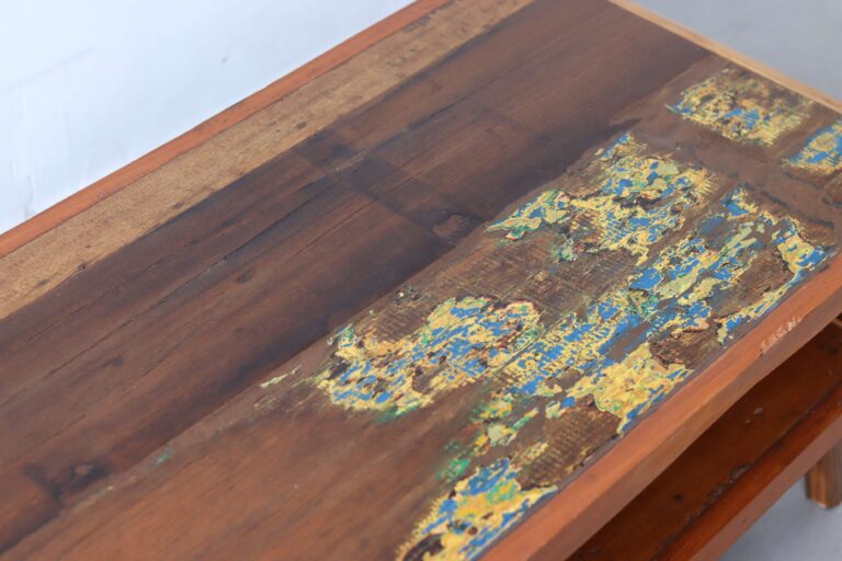 Elke tafel is met de hand vervaardigd door vakmensen in Indonesië. Geen enkele salontafel is hetzelfde: de originele lagen verf, sporen van gebruik en natuurlijke houtstructuren maken elk stuk uniek. Dit maakt jouw tafel niet alleen een meubel, maar ook een stukje geschiedenis. Door het hergebruiken van dit hout draag je bovendien bij aan een duurzamere wereld.