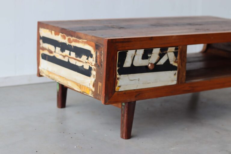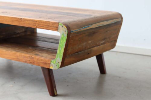Een authentiek meubel gemaakt van hout van oude vissersbootjes van Bali, Java, Sumba, Lombok, Sulawesi of één van de vele andere eilanden van Indonesië. Voor het maken van onze meubels gebruiken wij uitsluitend hout van vissersboten die niet meer zeewaardig zijn. Dit hout, van uitzonderlijke kwaliteit, is door zijn kleurrijke en verweerde uitstraling een ware bron van inspiratie.