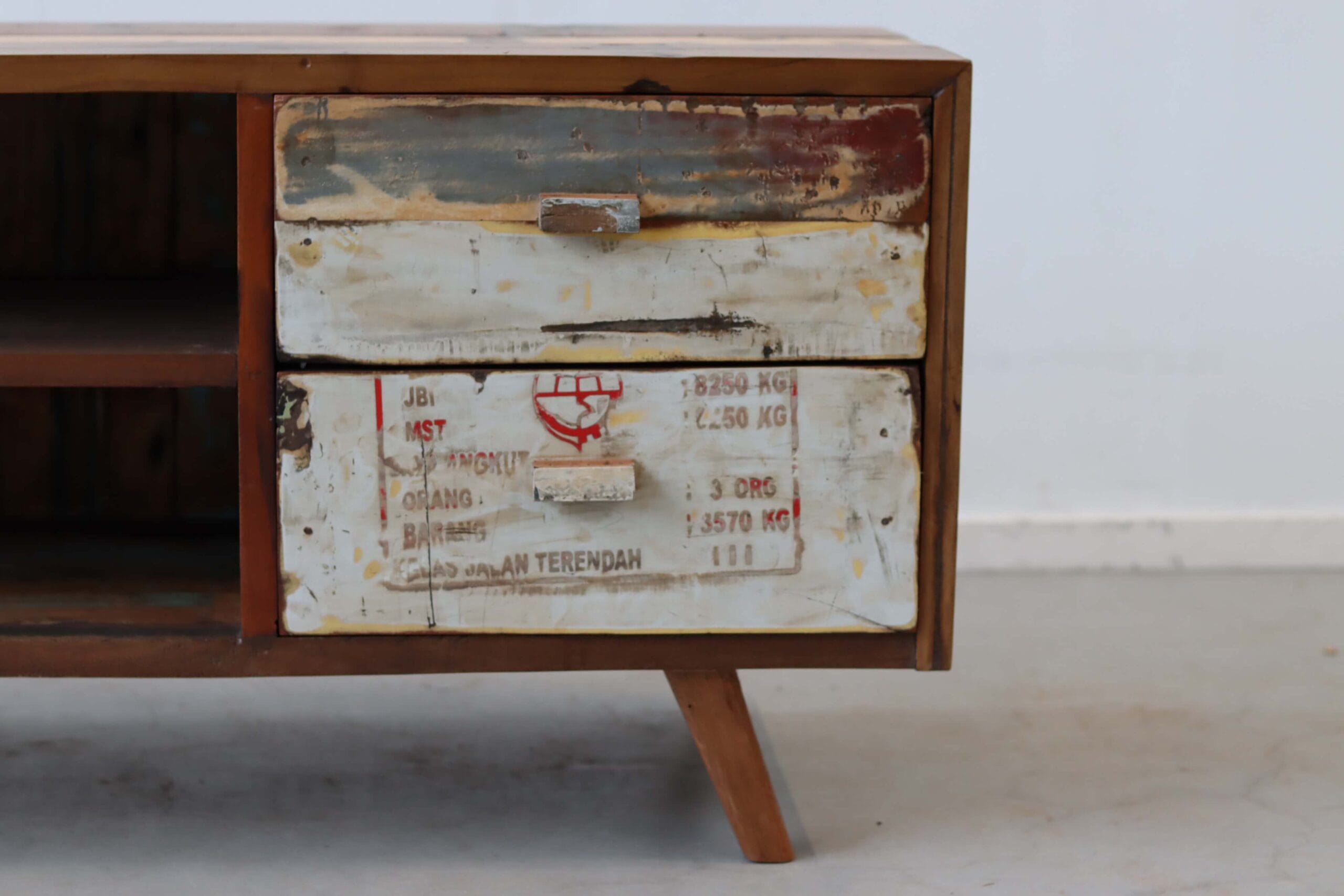 Een authentiek meubel gemaakt van hout van oude vissersbootjes van Bali, Java, Sumba, Lombok, Sulawesi of één van de vele andere eilanden van Indonesië. Voor het maken van onze meubels gebruiken wij uitsluitend hout van vissersboten die niet meer zeewaardig zijn. Dit hout, van uitzonderlijke kwaliteit, is door zijn kleurrijke en verweerde uitstraling een ware bron van inspiratie.