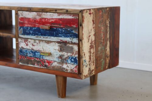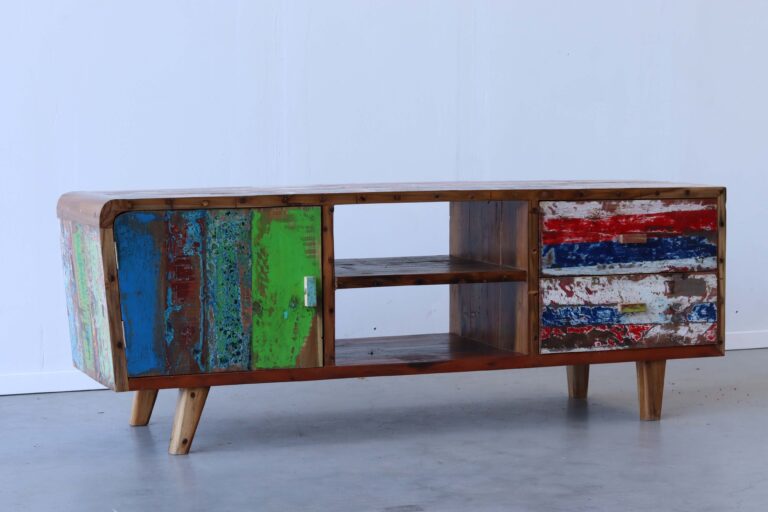 Een authentiek meubel gemaakt van hout van oude vissersbootjes van Bali, Java, Sumba, Lombok, Sulawesi of één van de vele andere eilanden van Indonesië. Voor het maken van onze meubels gebruiken wij uitsluitend hout van vissersboten die niet meer zeewaardig zijn. Dit hout, van uitzonderlijke kwaliteit, is door zijn kleurrijke en verweerde uitstraling een ware bron van inspiratie.