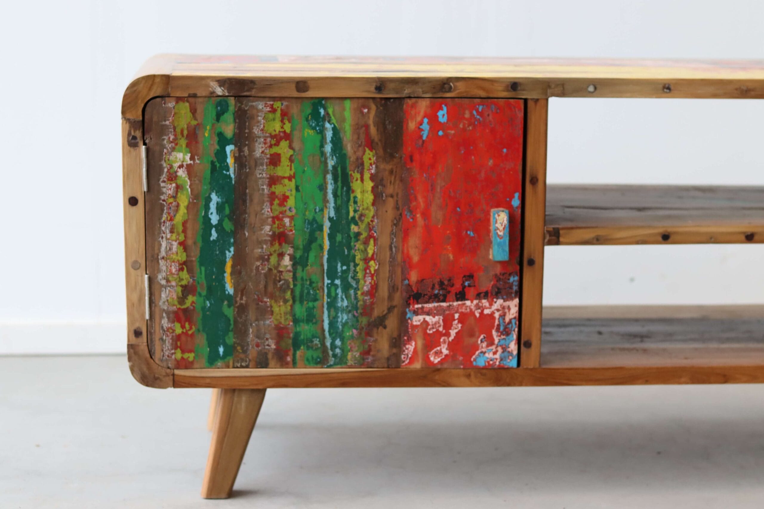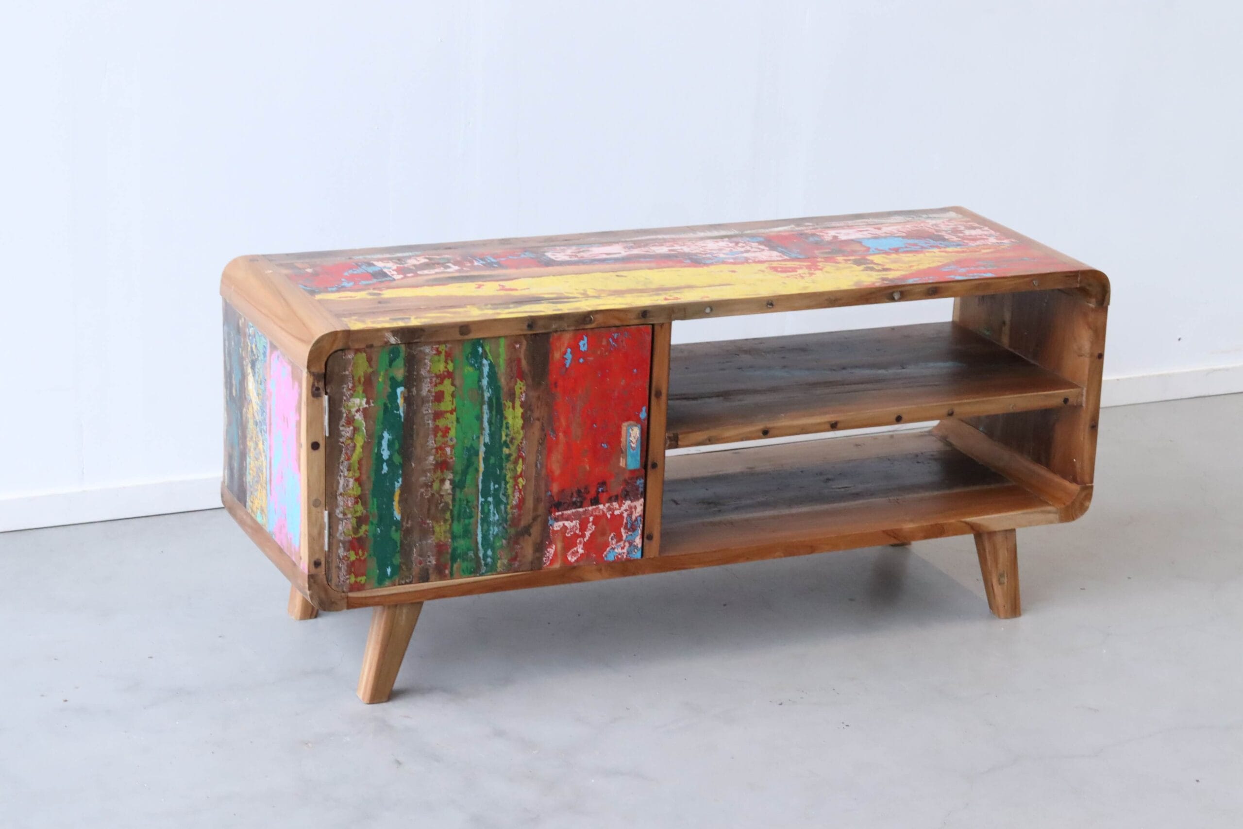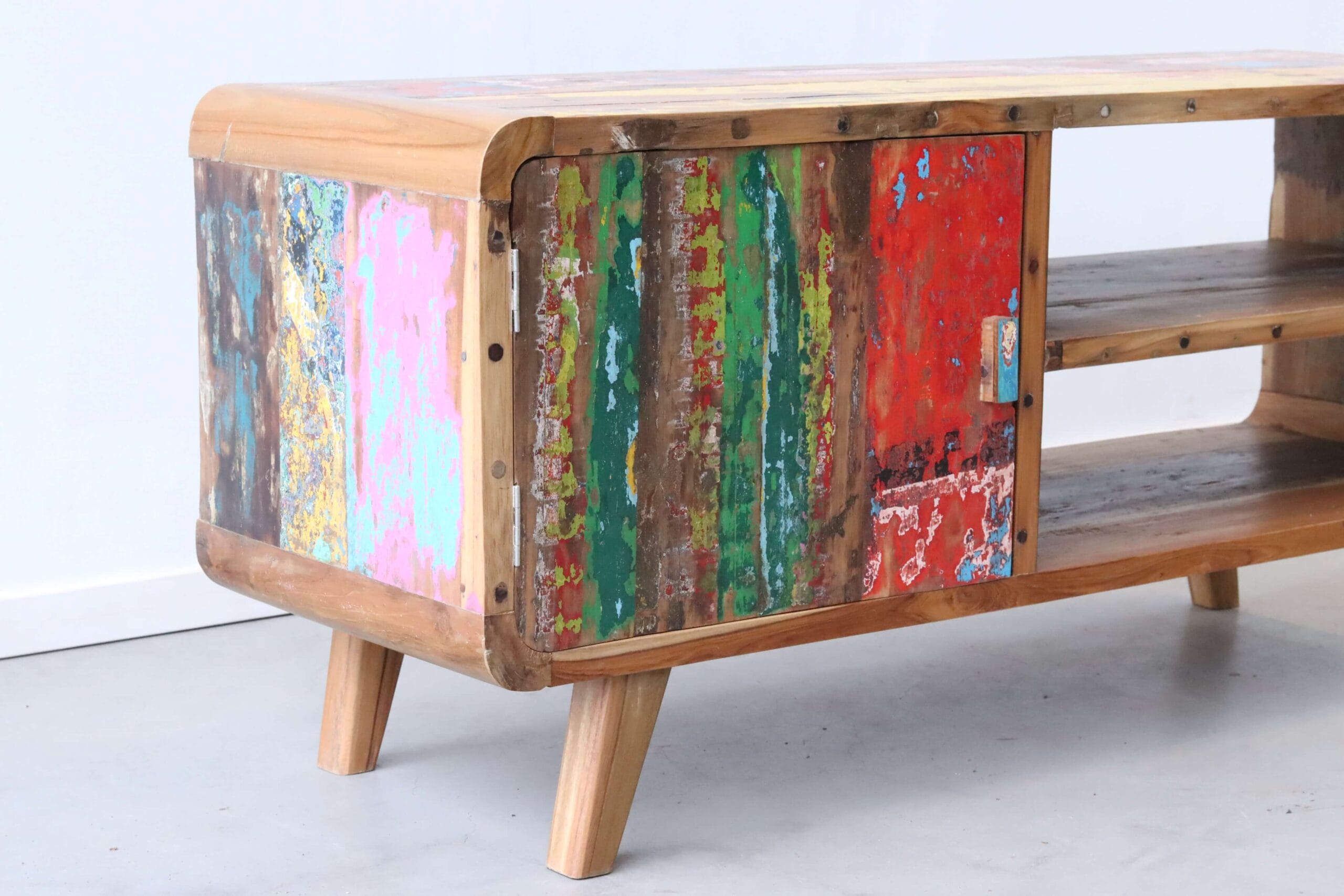 Dit model maakt deel uit van onze collectie TV meubels van boothout, waarin hergebruik en karakter altijd centraal staan.