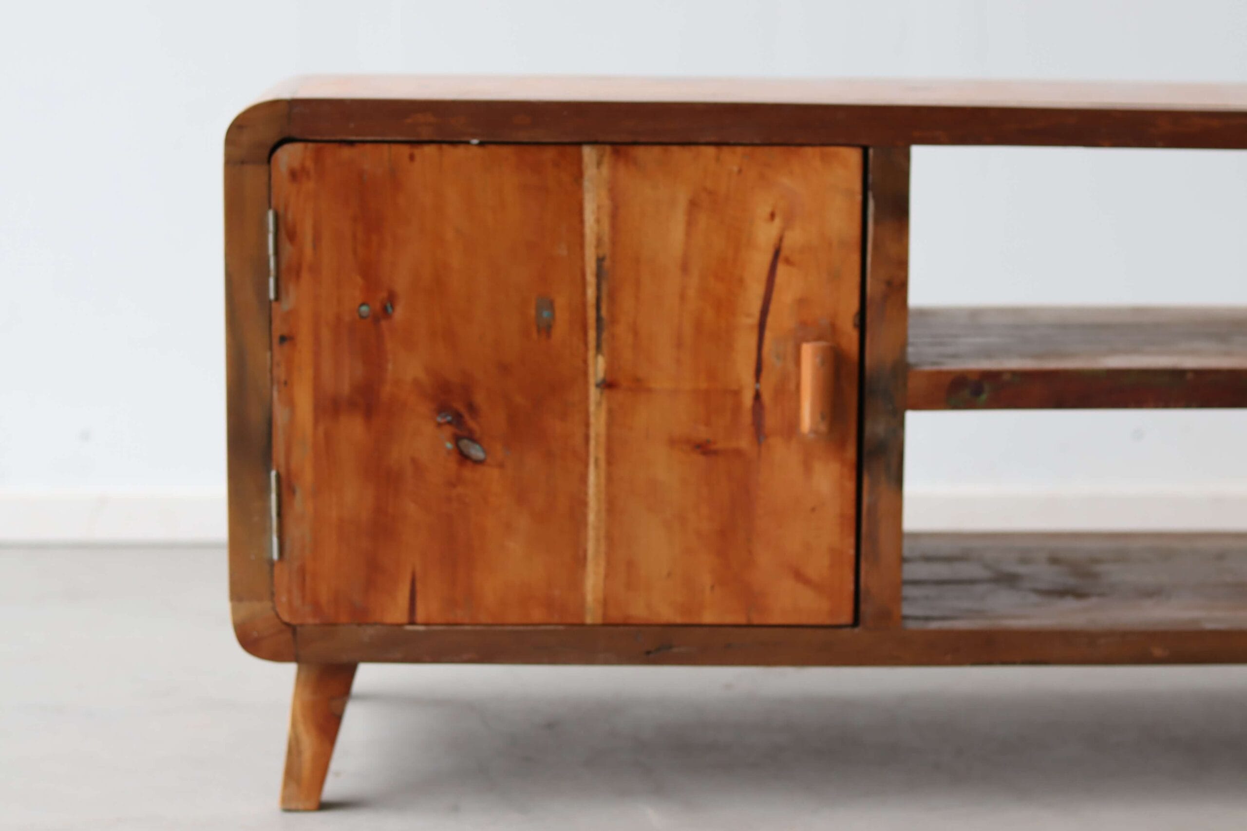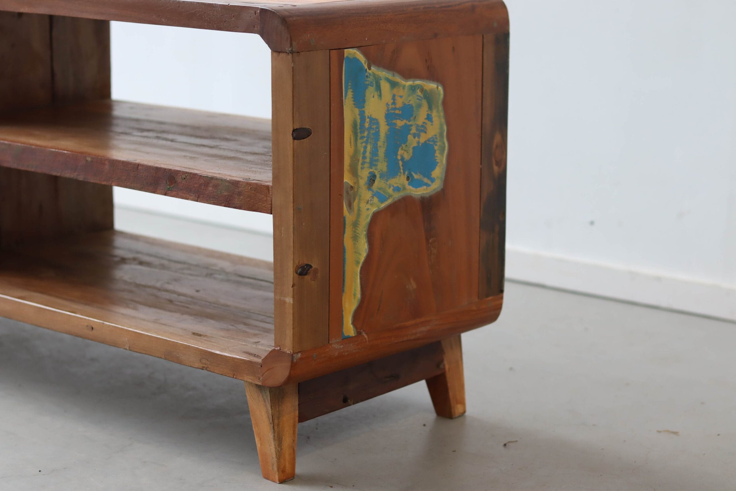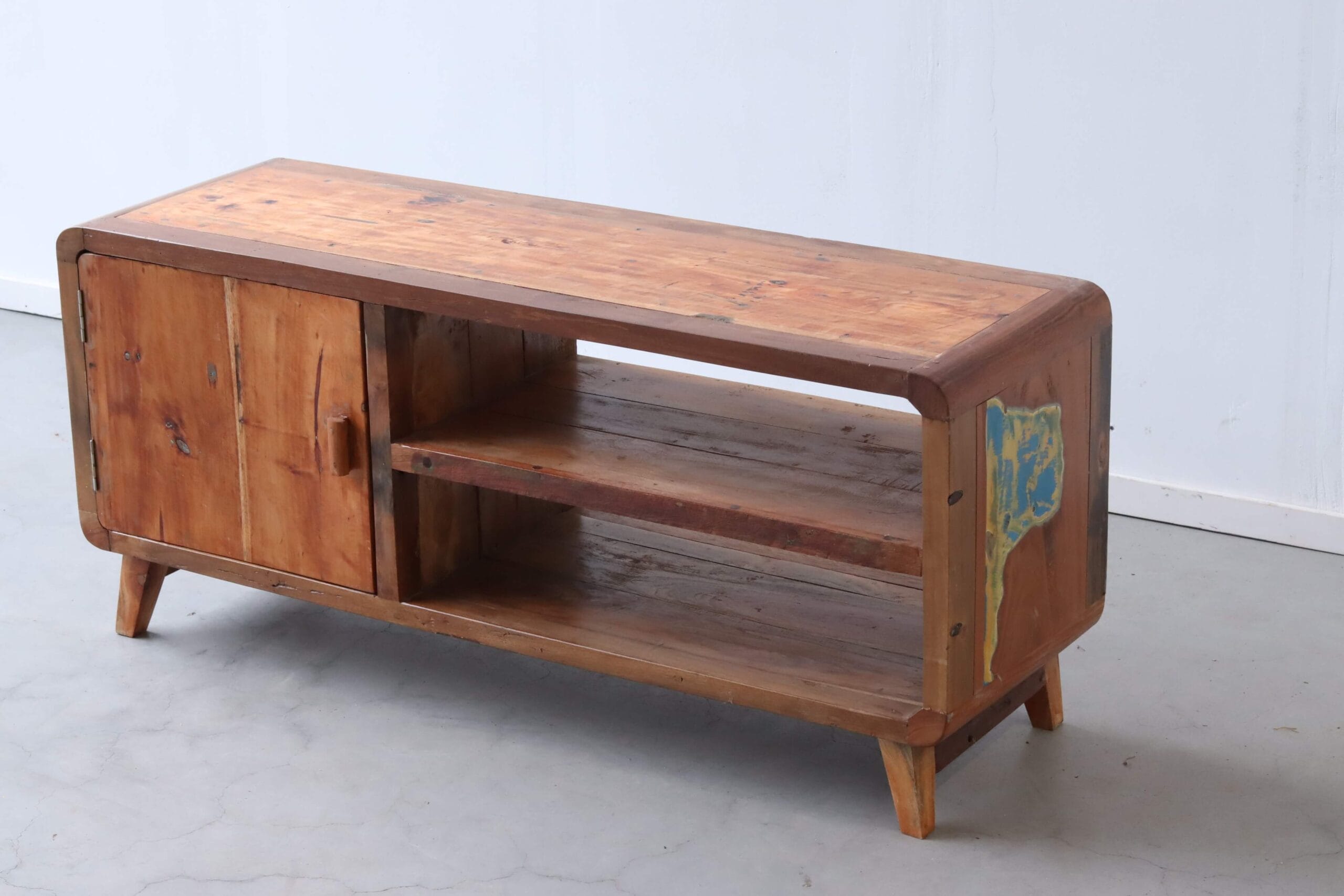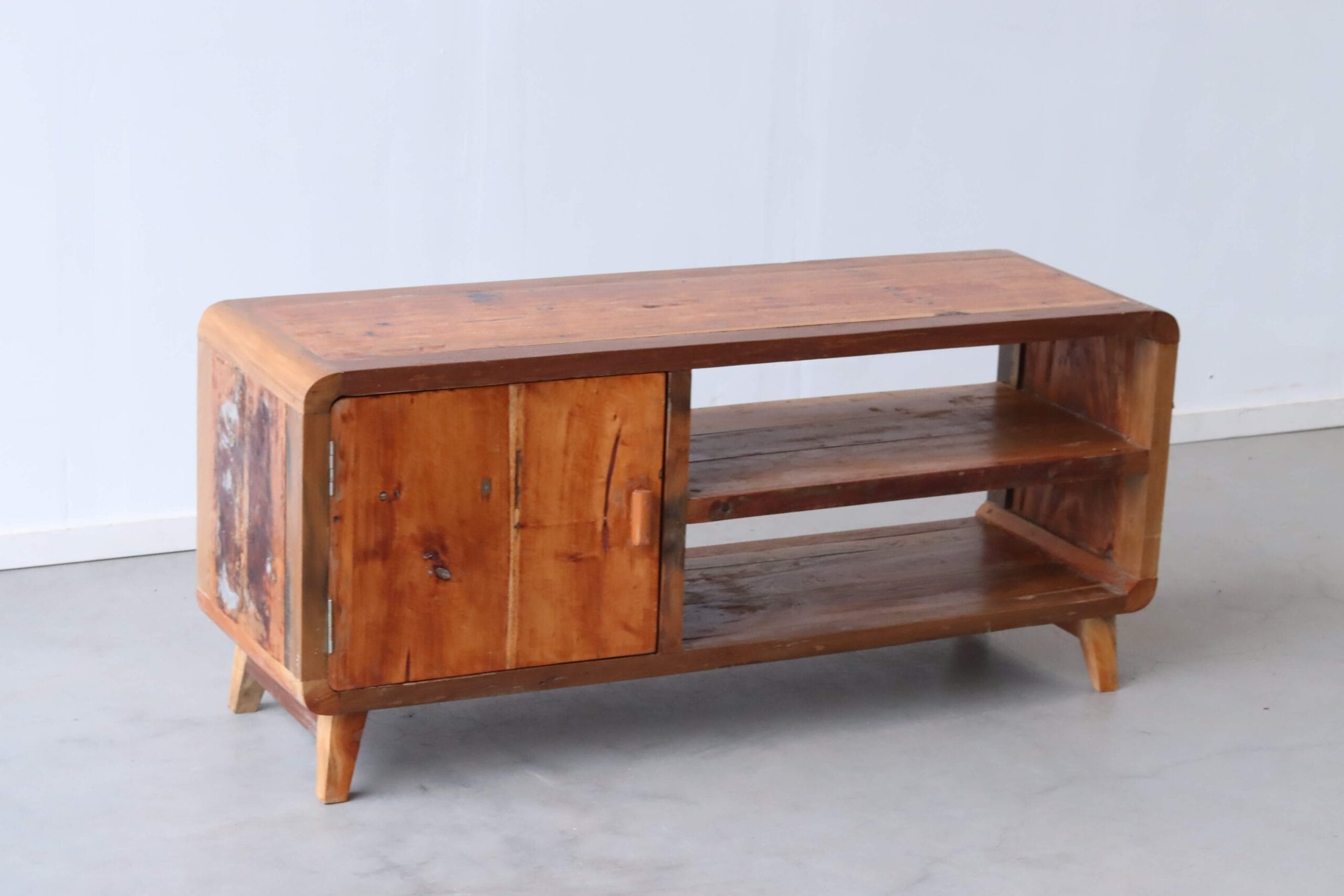 Dit model maakt deel uit van onze collectie TV meubels van boothout, waarin hergebruik en vakmanschap altijd de basis vormen.