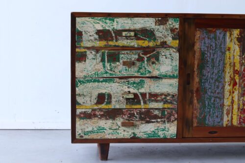 Een authentiek meubel gemaakt van hout van oude vissersbootjes van Bali, Java, Sumba, Lombok, Sulawesi of één van de vele andere eilanden van Indonesië. Voor het maken van onze meubels gebruiken wij uitsluitend hout van vissersboten die niet meer zeewaardig zijn. Dit hout, van uitzonderlijke kwaliteit, is door zijn kleurrijke en verweerde uitstraling een ware bron van inspiratie.