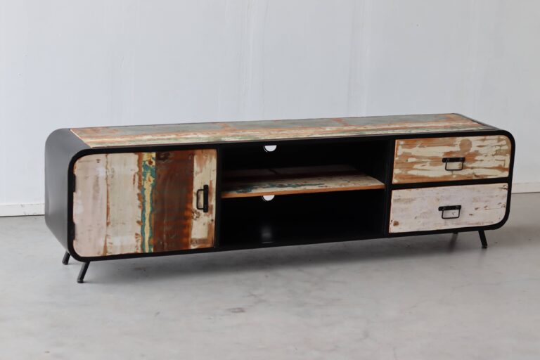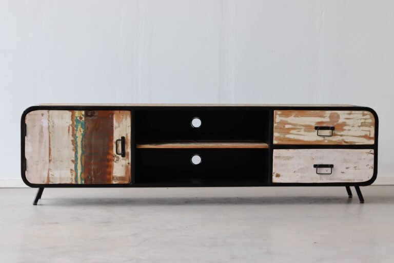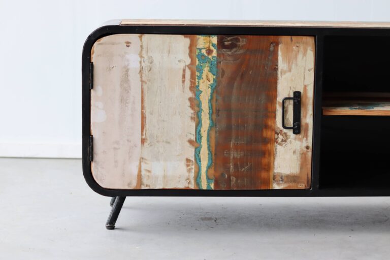 Het TV meubel industrieel sloophout: van oude Indiase huisjes naar een stoere blikvanger in jouw interieur!
