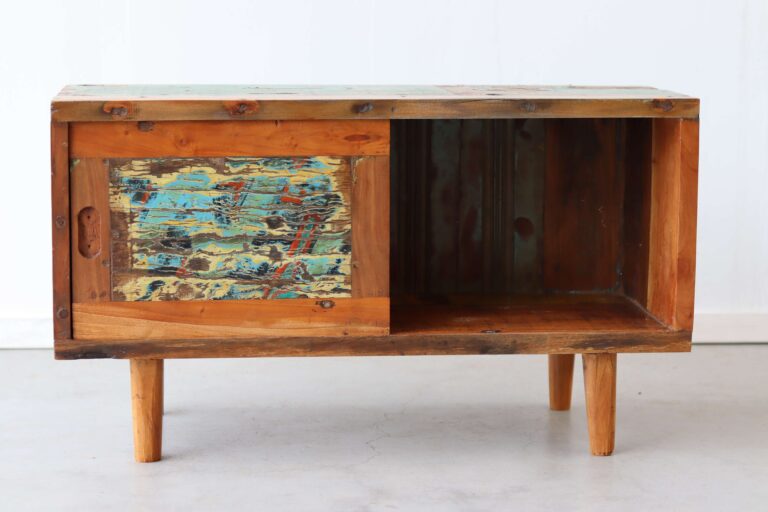 Een authentiek meubel gemaakt van hout van oude vissersbootjes van Bali, Java, Sumba, Lombok, Sulawesi of één van de vele andere eilanden van Indonesië. Voor het maken van onze meubels gebruiken wij uitsluitend hout van vissersboten die niet meer zeewaardig zijn. Dit hout, van uitzonderlijke kwaliteit, is door zijn kleurrijke en verweerde uitstraling een ware bron van inspiratie.