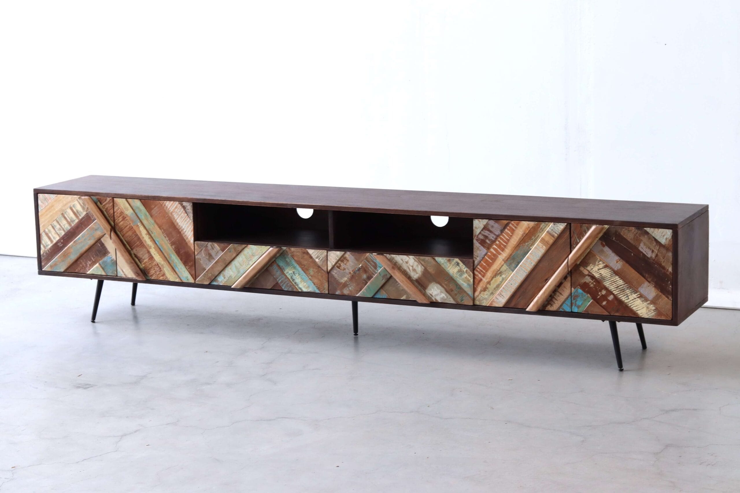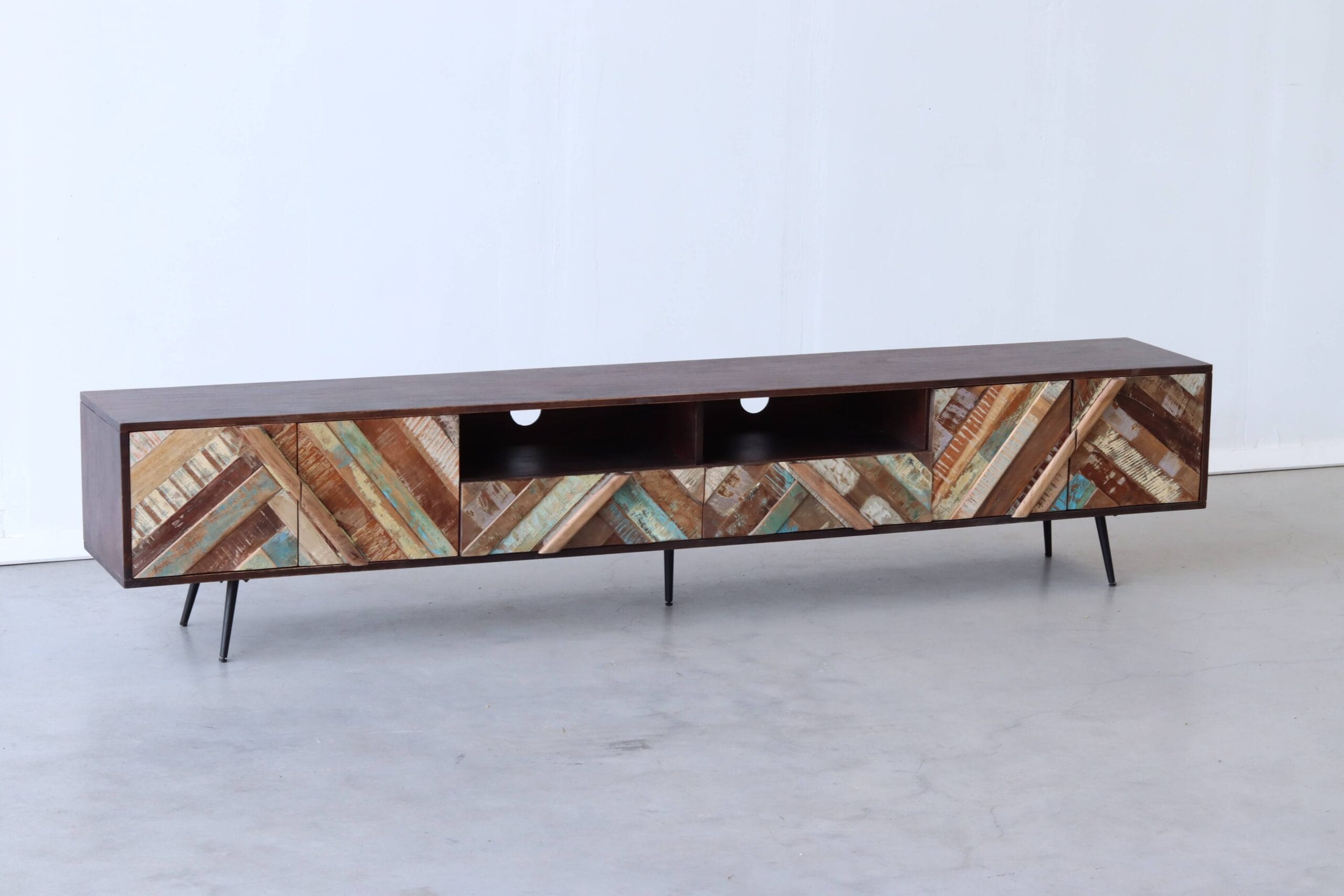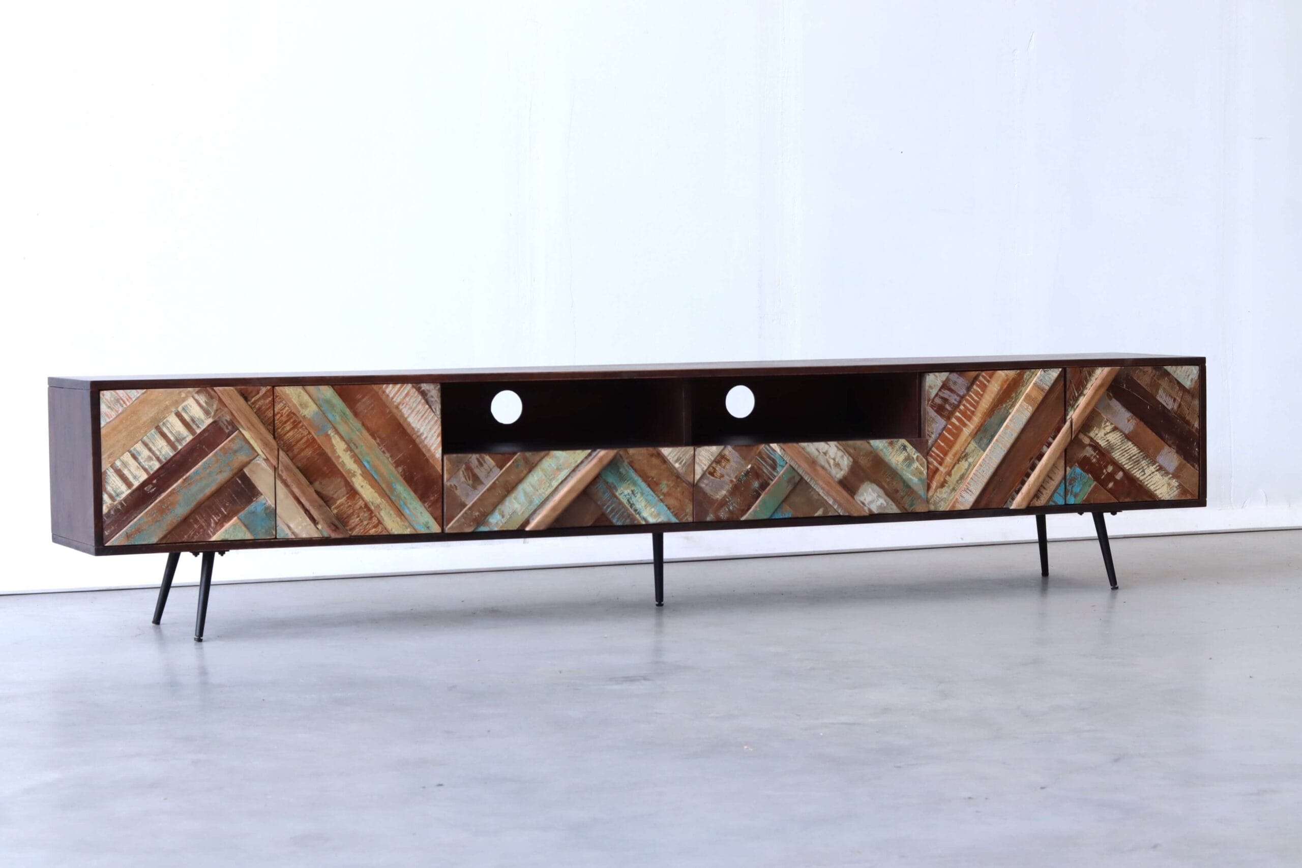 Een stijlvol TV-meubel met levendig visgraatdesign!