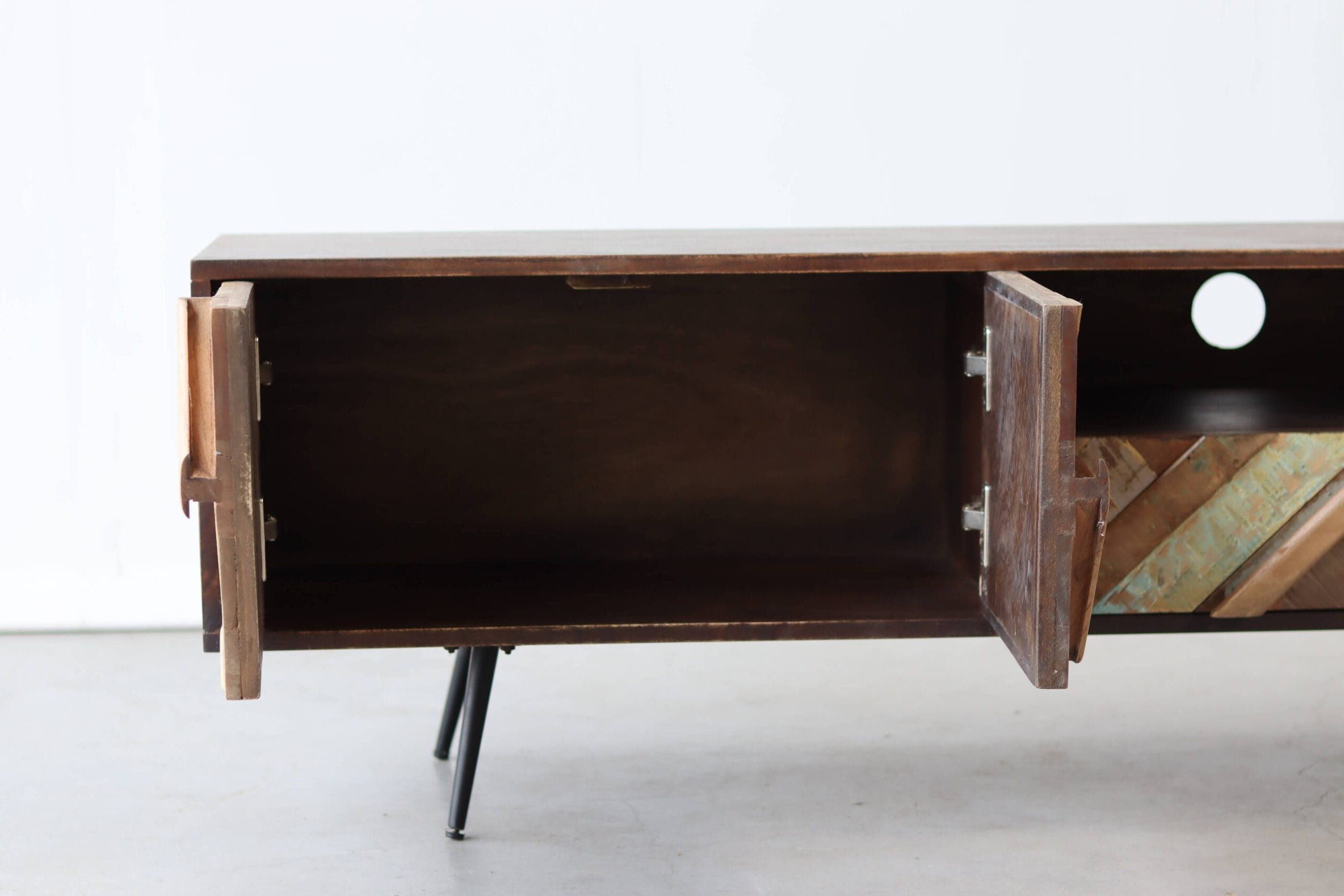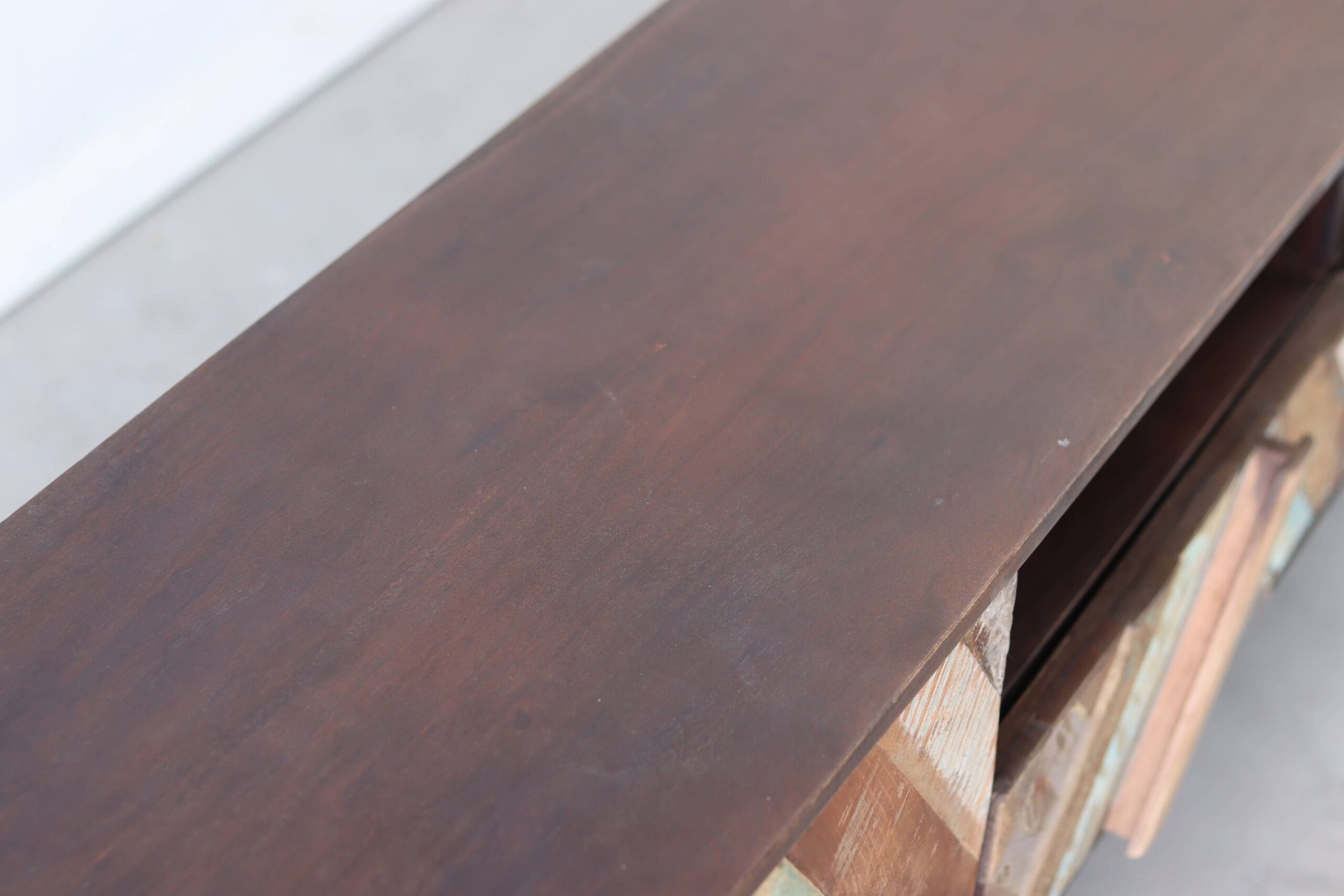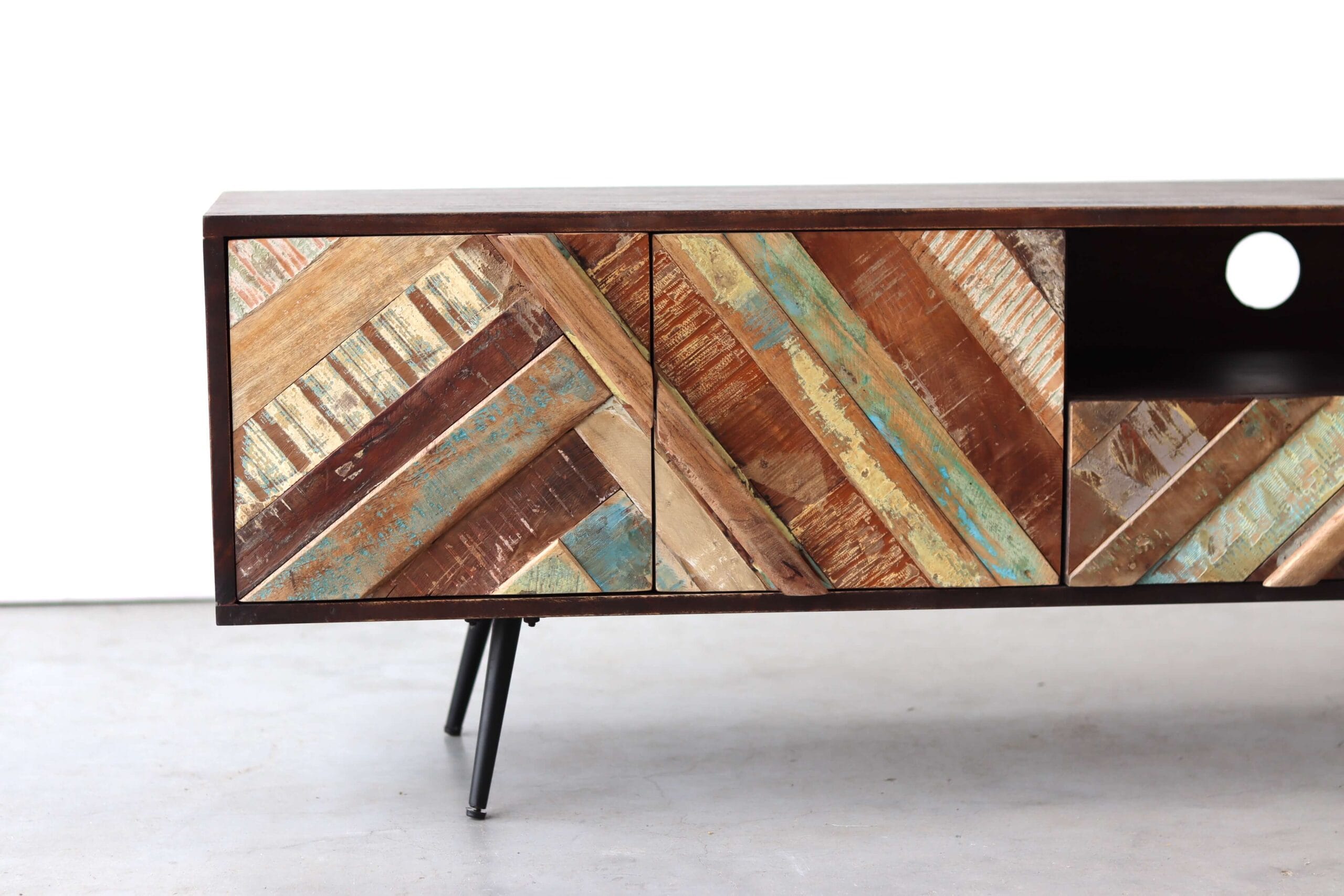 Let op: door het gebruik van gerecycled hout kan het geleverde meubel subtiele nuances vertonen ten opzichte van het exemplaar op de foto. Dit maakt elk stuk authentiek en uniek.