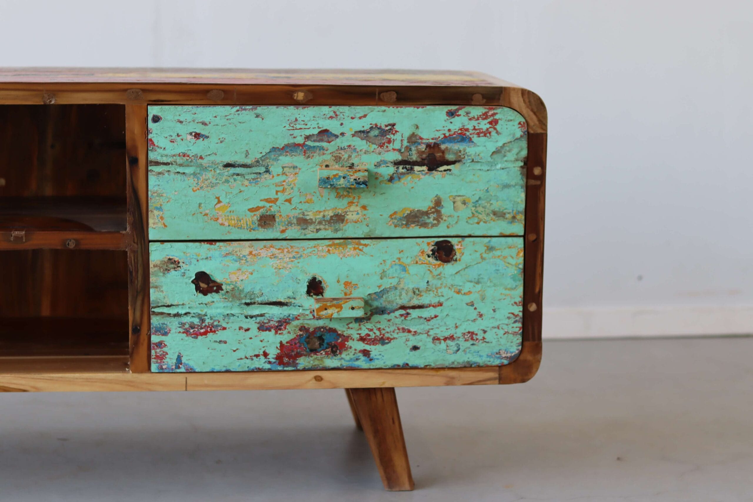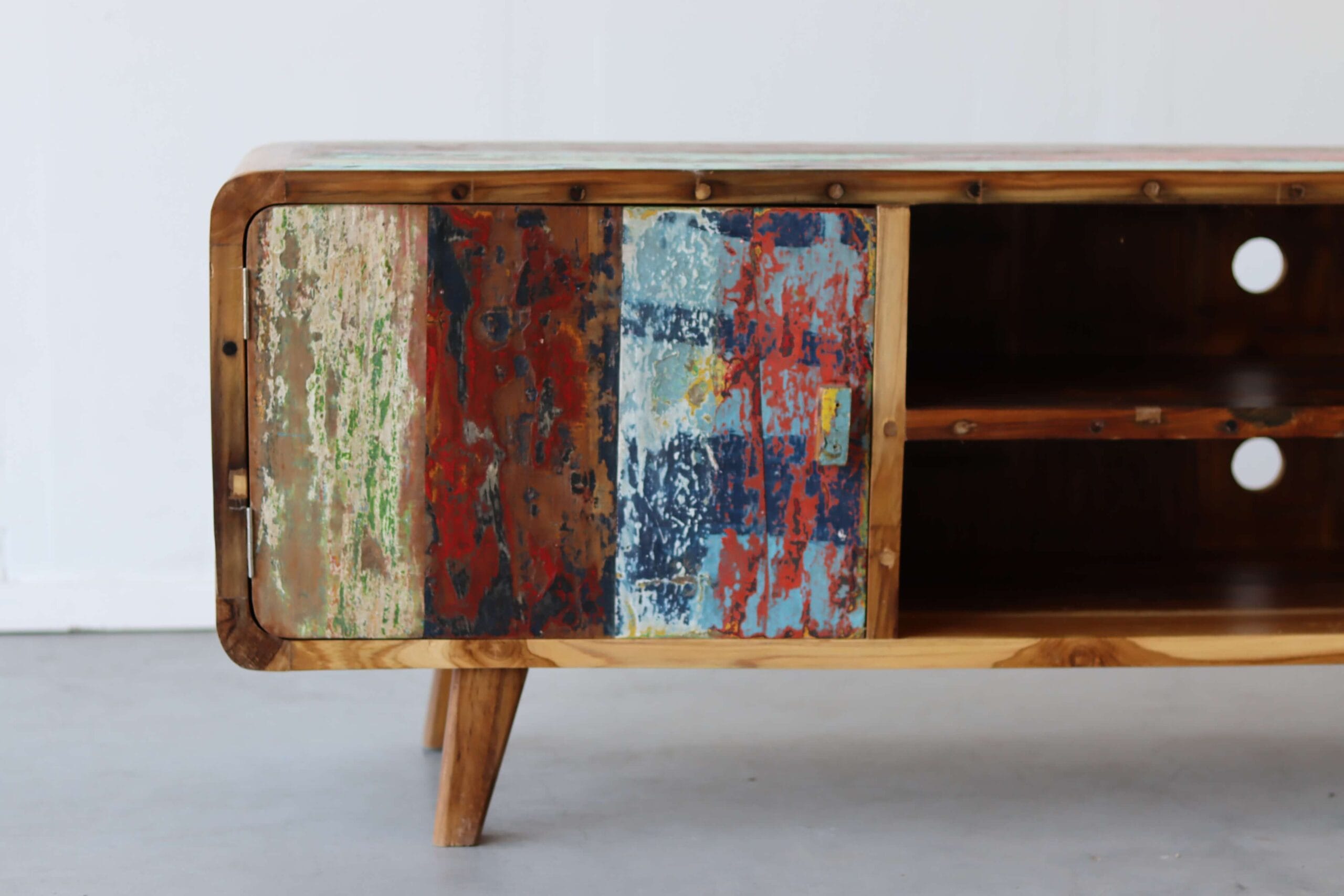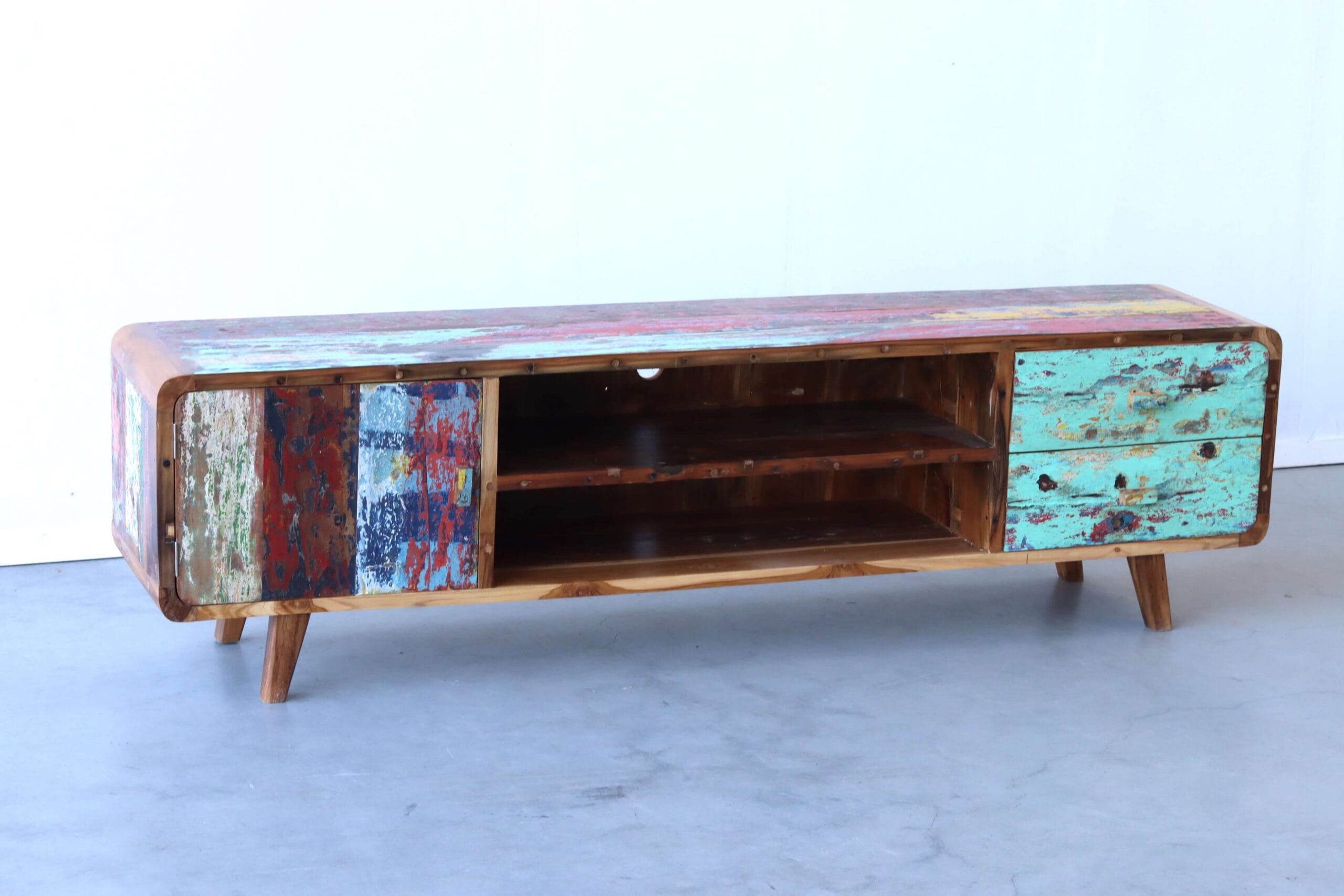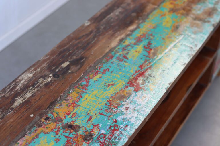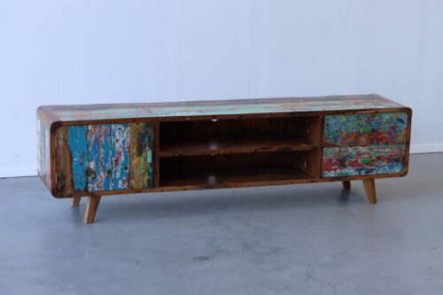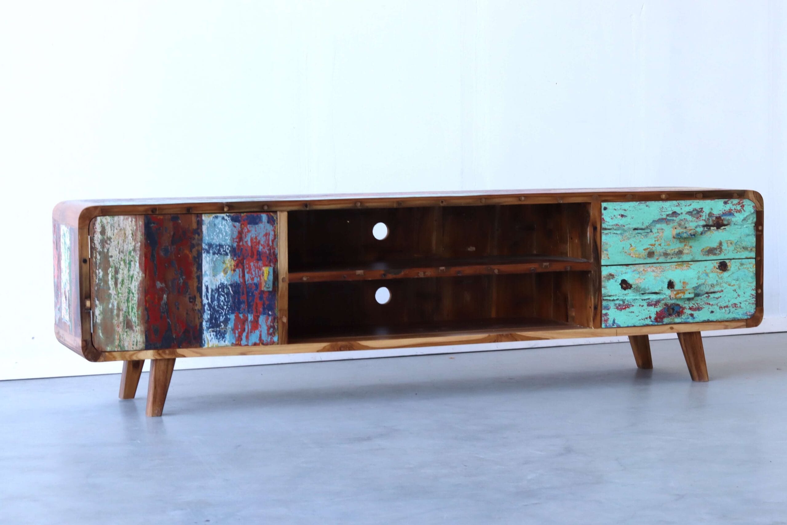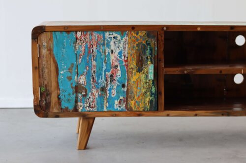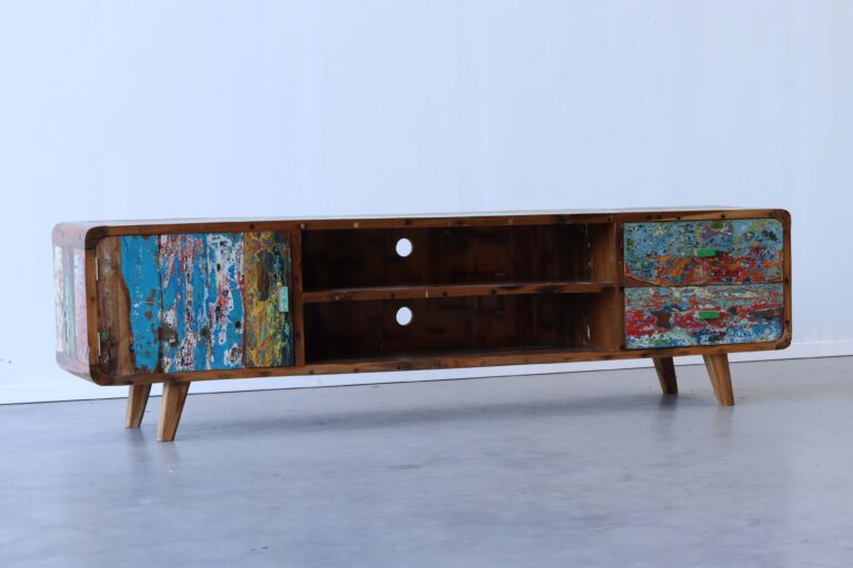 Ben je op zoek naar een tv meubel van hout dat niet wegvalt in je interieur, maar het juist tot leven brengt? Maak kennis met het tv meubel Senang Denpasar – een meubelstuk dat zijn eigen verhaal vertelt. Gemaakt van gerecycled kleurrijk boothout, met een ziel die je voelt en ziet.