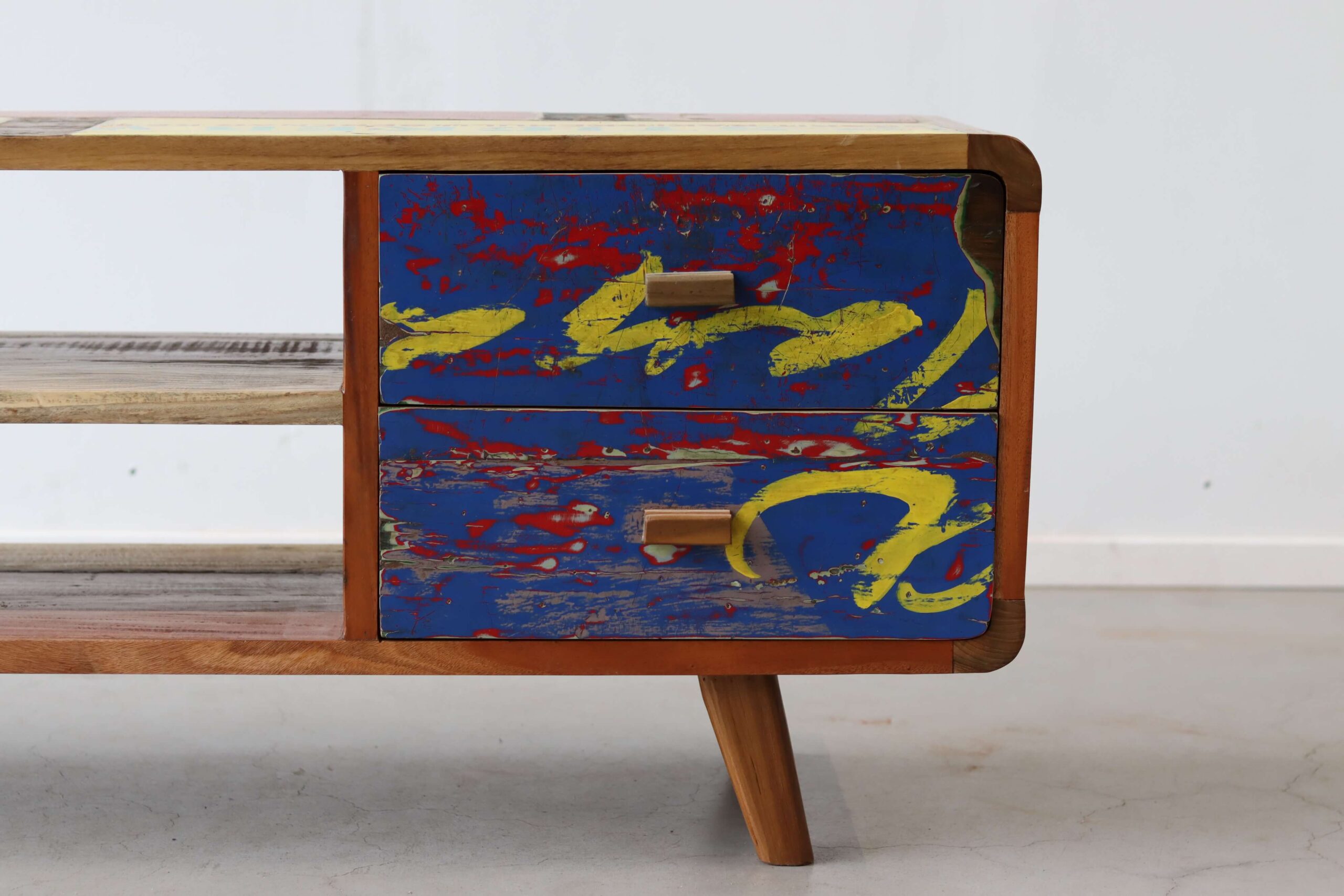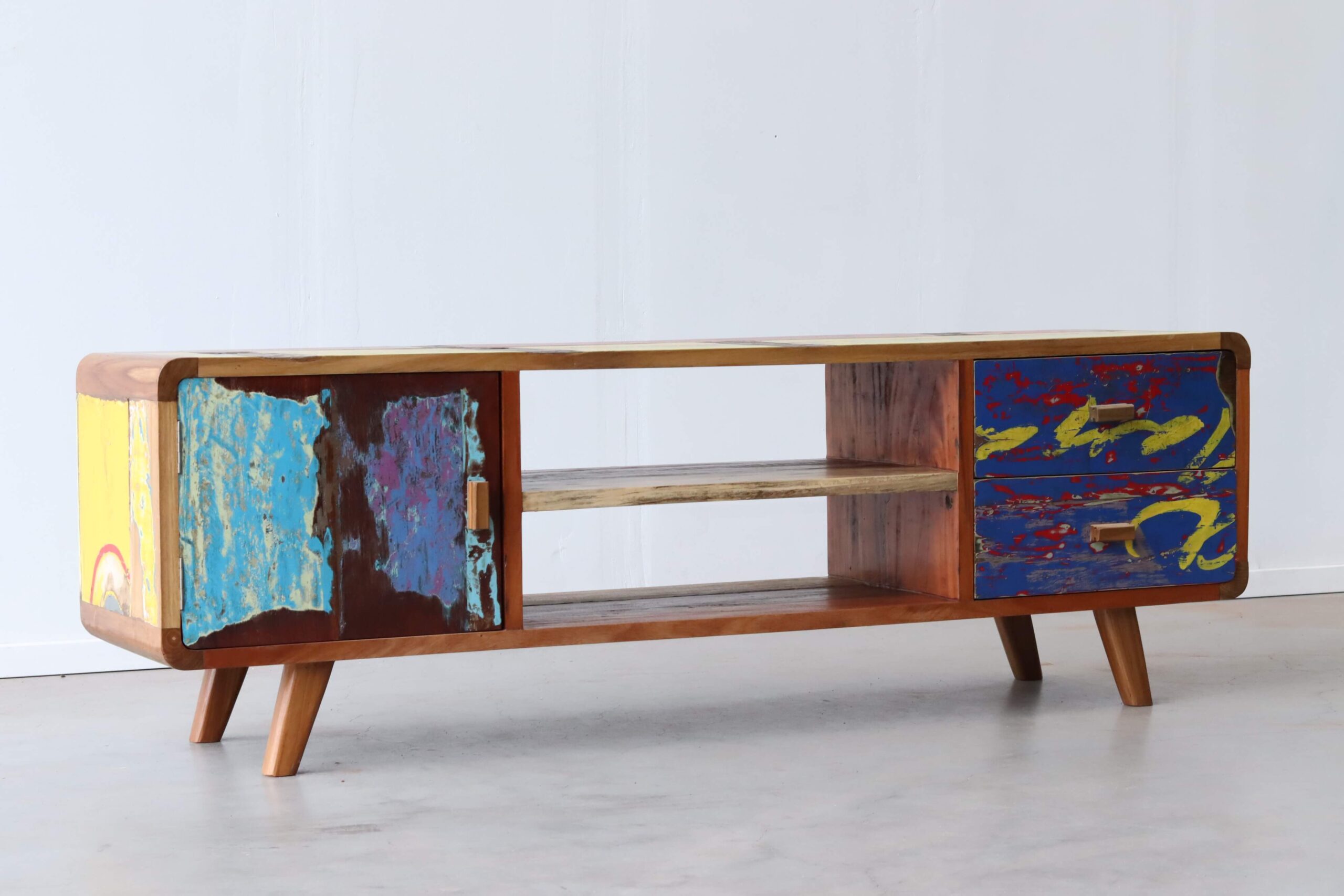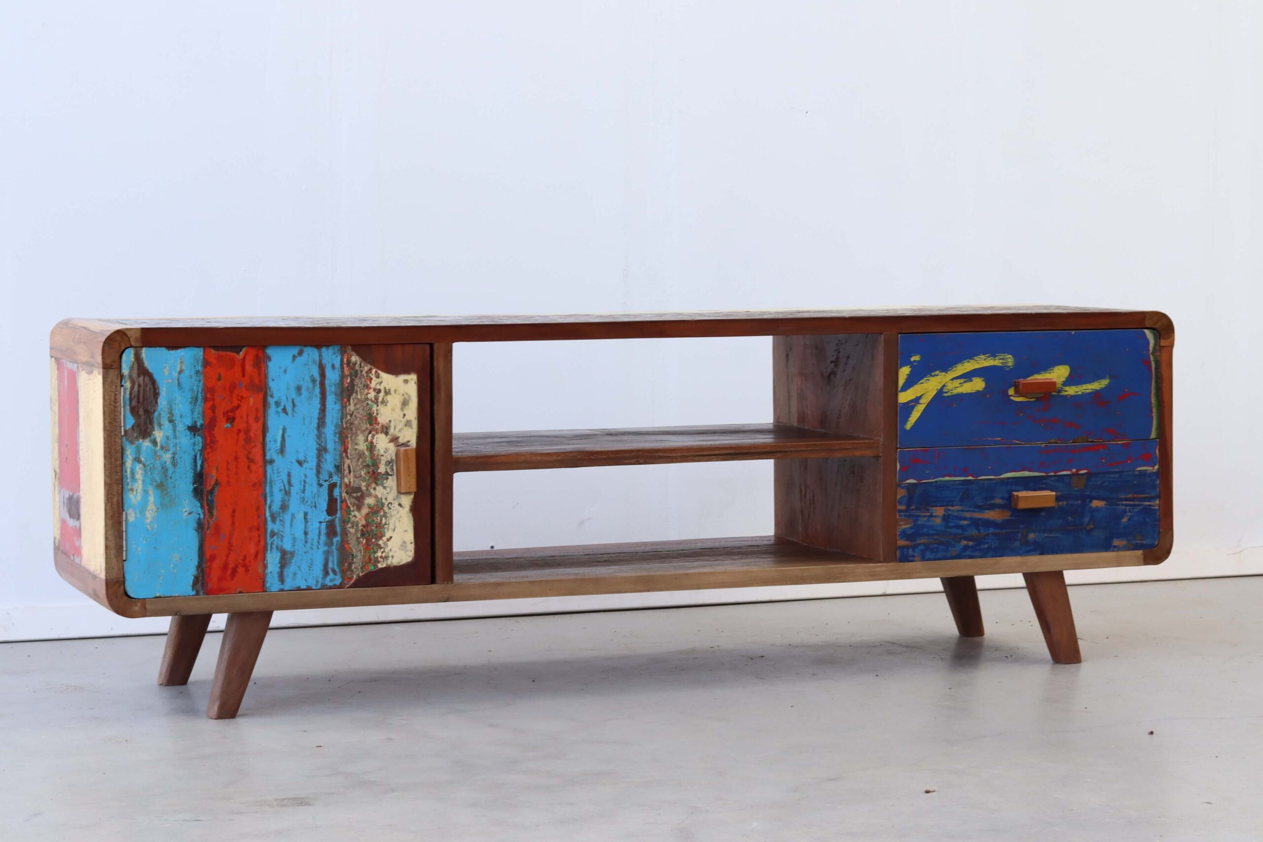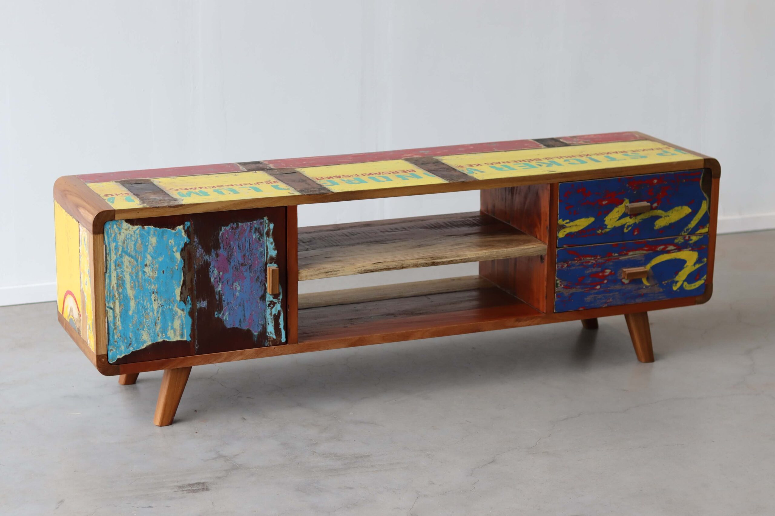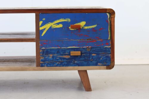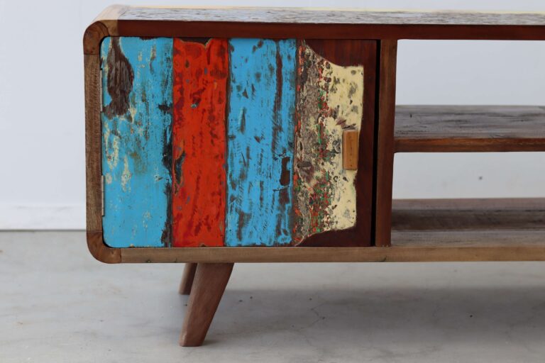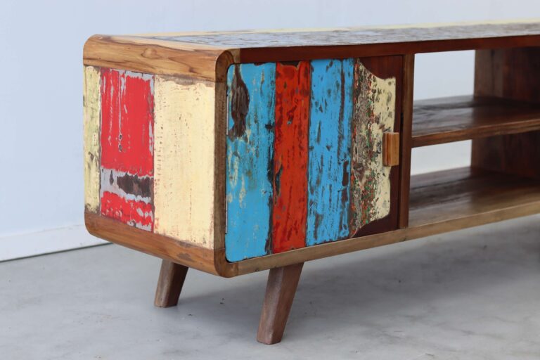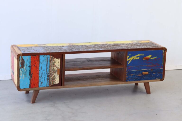 Maak kennis met de TV Meubel Senang, een unieke toevoeging aan jouw interieur die niet alleen functioneel is, maar ook een verhaal vertelt. “Senang” betekent geluk in het Indonesisch, en dat is precies wat dit meubelstuk uitstraalt. Gemaakt van authentiek hout van oude vissersboten, brengt het een vleugje geschiedenis en karakter in je huis.