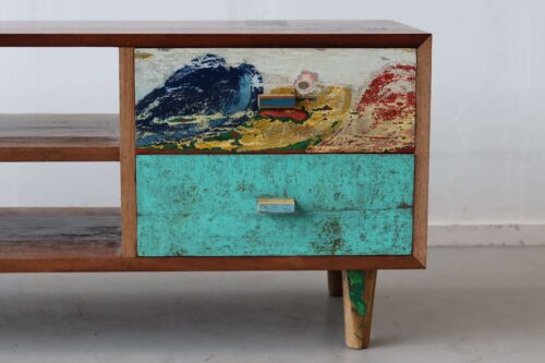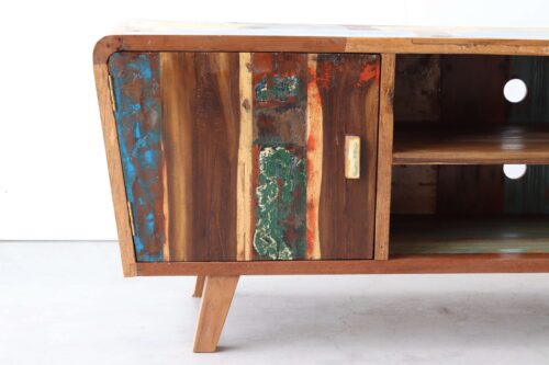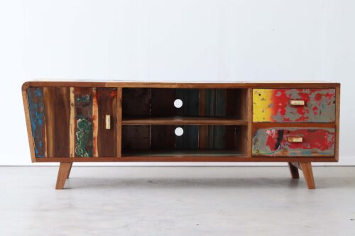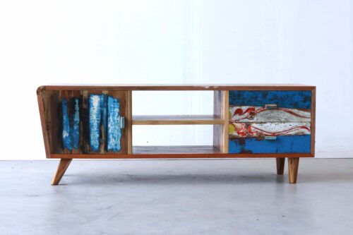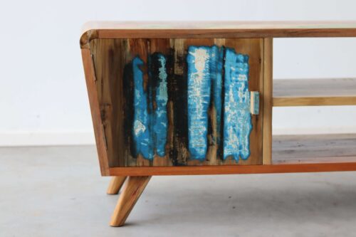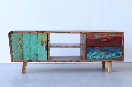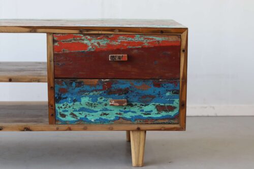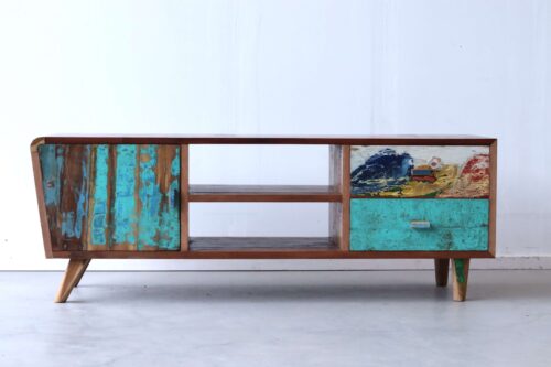 Of je nu een houten retro tv meubelkast zoekt of een wat kleiner houten retro tv kastje, in de uitgebreide collectie retro tv meubels van Daan Hout vind je ook iets wat bij jou interieurplannen past. Weg met die saaie meubels uit de grote woonwinkels! Het houten retro tv kastje wat je bij ons koopt is gemaakt van een oud vissersbootje dat jaren heeft rondgedobberd op de Indische Oceaan. Origineler kan het niet. Elk stukje hout is uniek voor jouw kast.