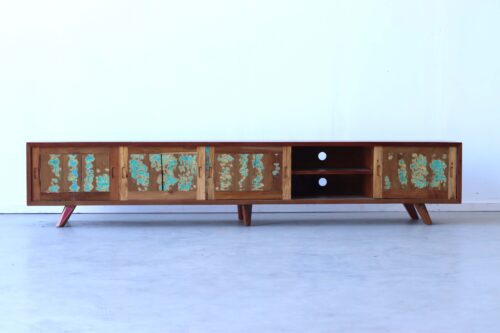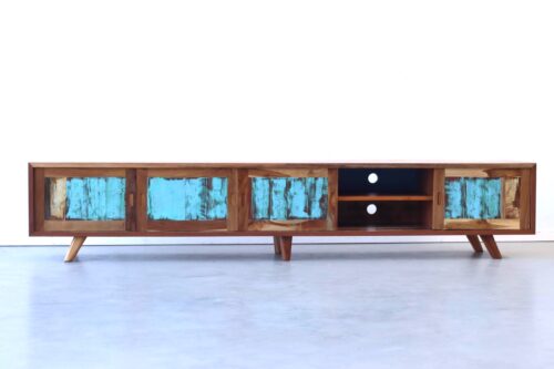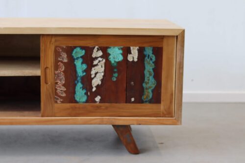Zo is er voor iedere ruimte en woonstijl een passend boothout TV meubel.