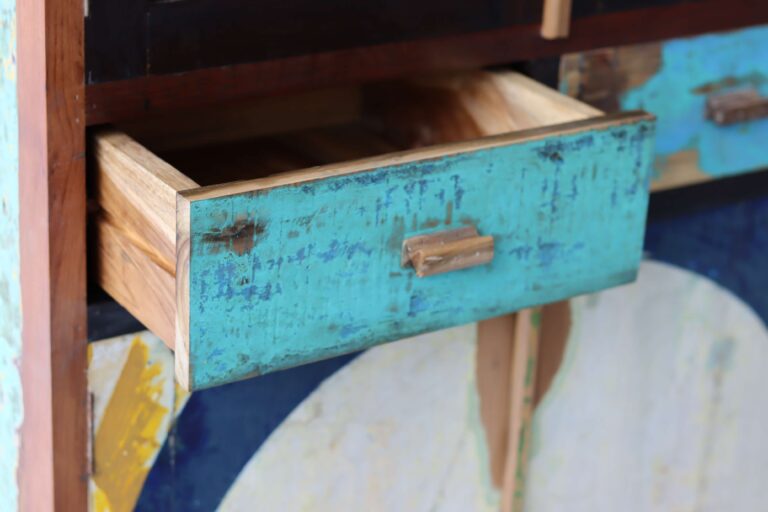 Respecteer de geschiedenis – Elk stuk hout in deze kast heeft al een verhaal. Door te kiezen voor meubels met een verleden, voeg je diepte en betekenis toe aan je interieur.